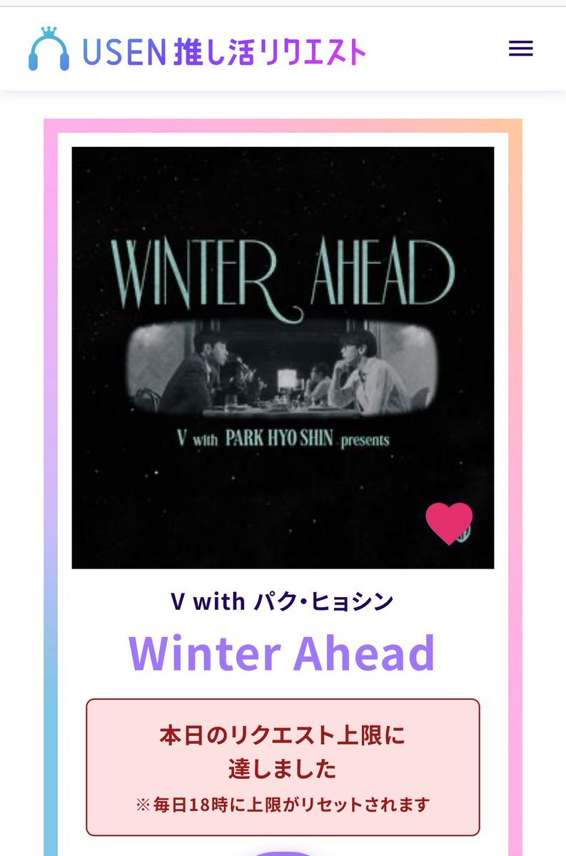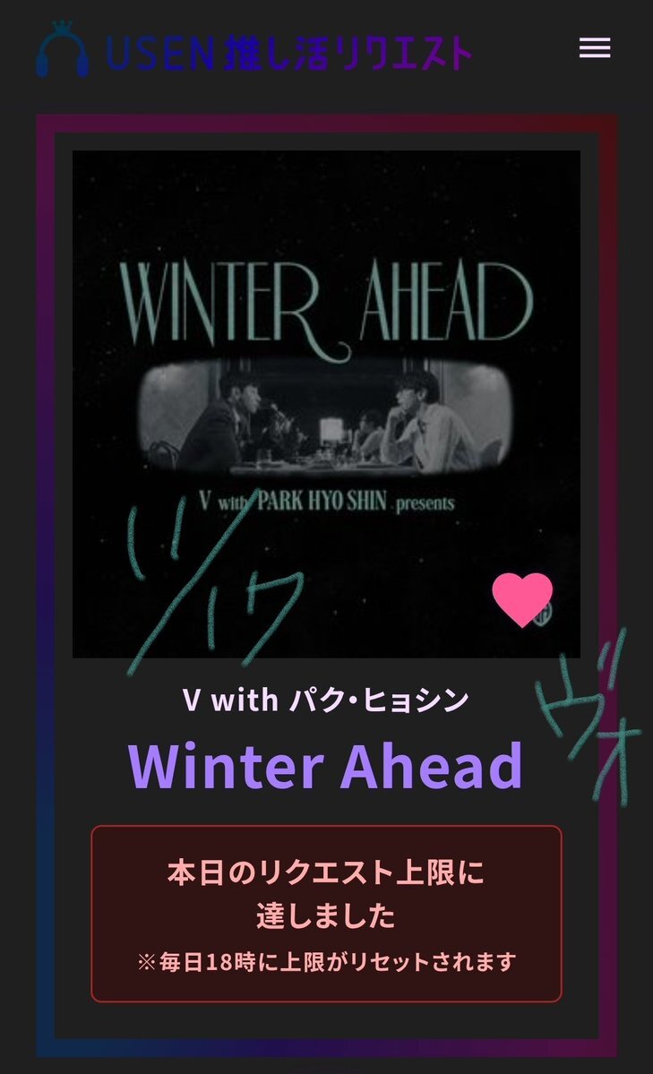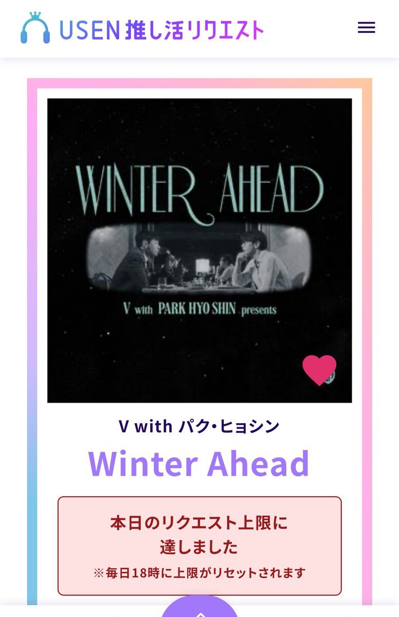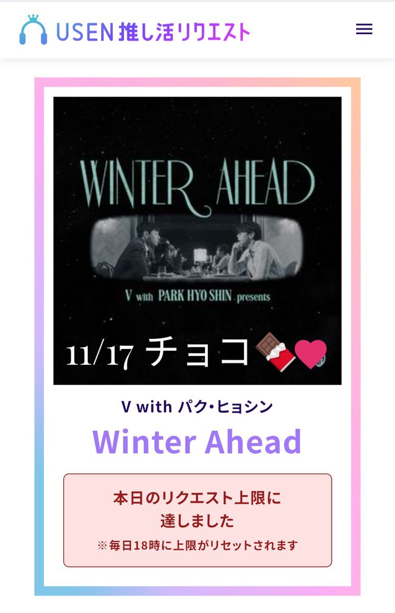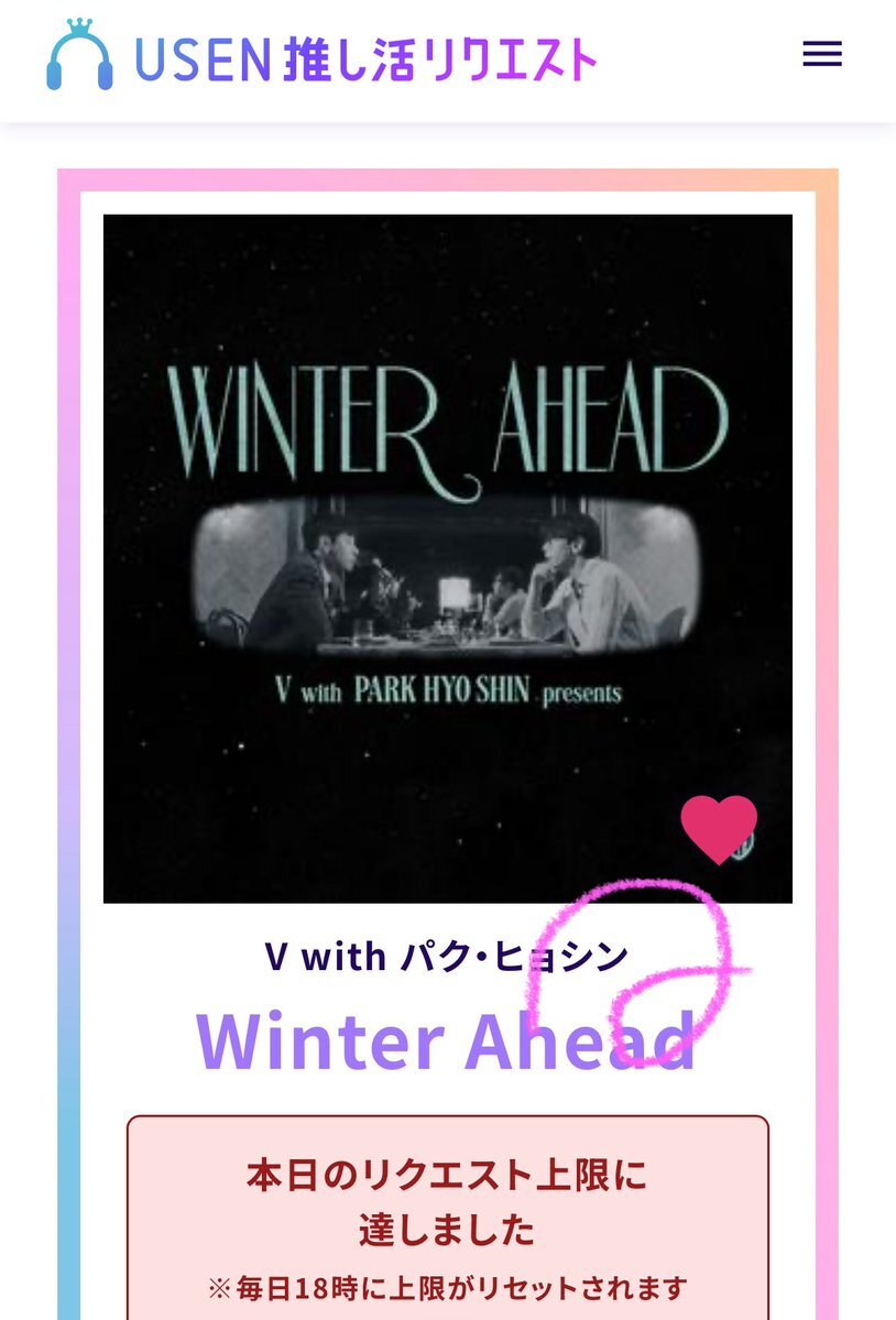 USEN 推し活リクエストでVのFRI(END)Sをリクエストしました🩷🐻! usen.oshireq.com/song/6374660 #USEN推し活リクエスト #推しリク #V