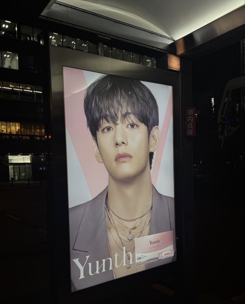 \バス停でVさん発見👀✨/ 東京のバス停に、VさんとYunthの広告が登場💗 東京に出現したVさんを探してください! 見た方はぜひ撮影して投稿で教えてくださいね! #Yunth #V pic.x.com/Nz0UIFKHnF