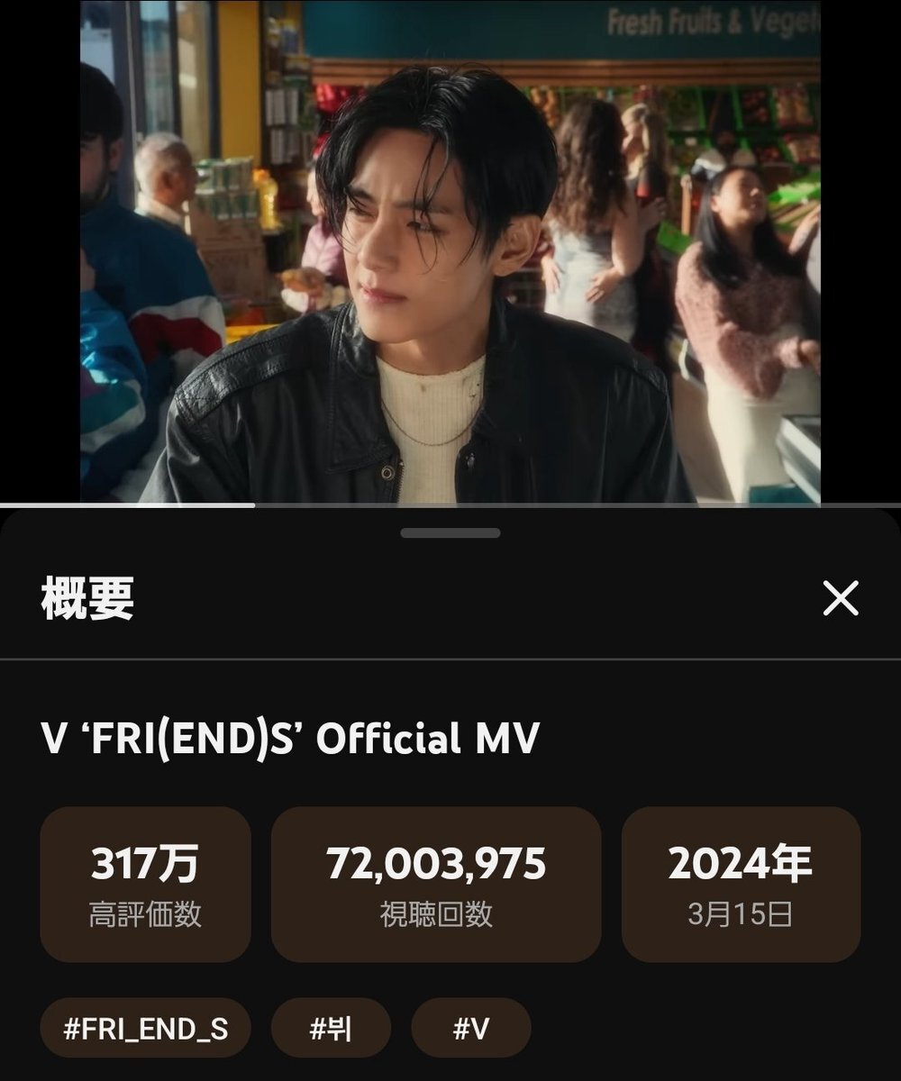 🐻‍テテ応援💚 ㊗️おめでとう❣️7,200万回🎉🎉🎉 『FRI(END)S’』Official MV 現在再生回数72,003,975回❣️ 長い間友達だった2人の関係をもっと発展させたい心を歌った、告白ソングby V 🎼 youtu.be/62peQdQv4uo?si… 公式MVを検索・視聴して応援 💚 #V_FRIENDS # #v WeLoveYouTaehyung pic.x.com/LoKBo6HWVV