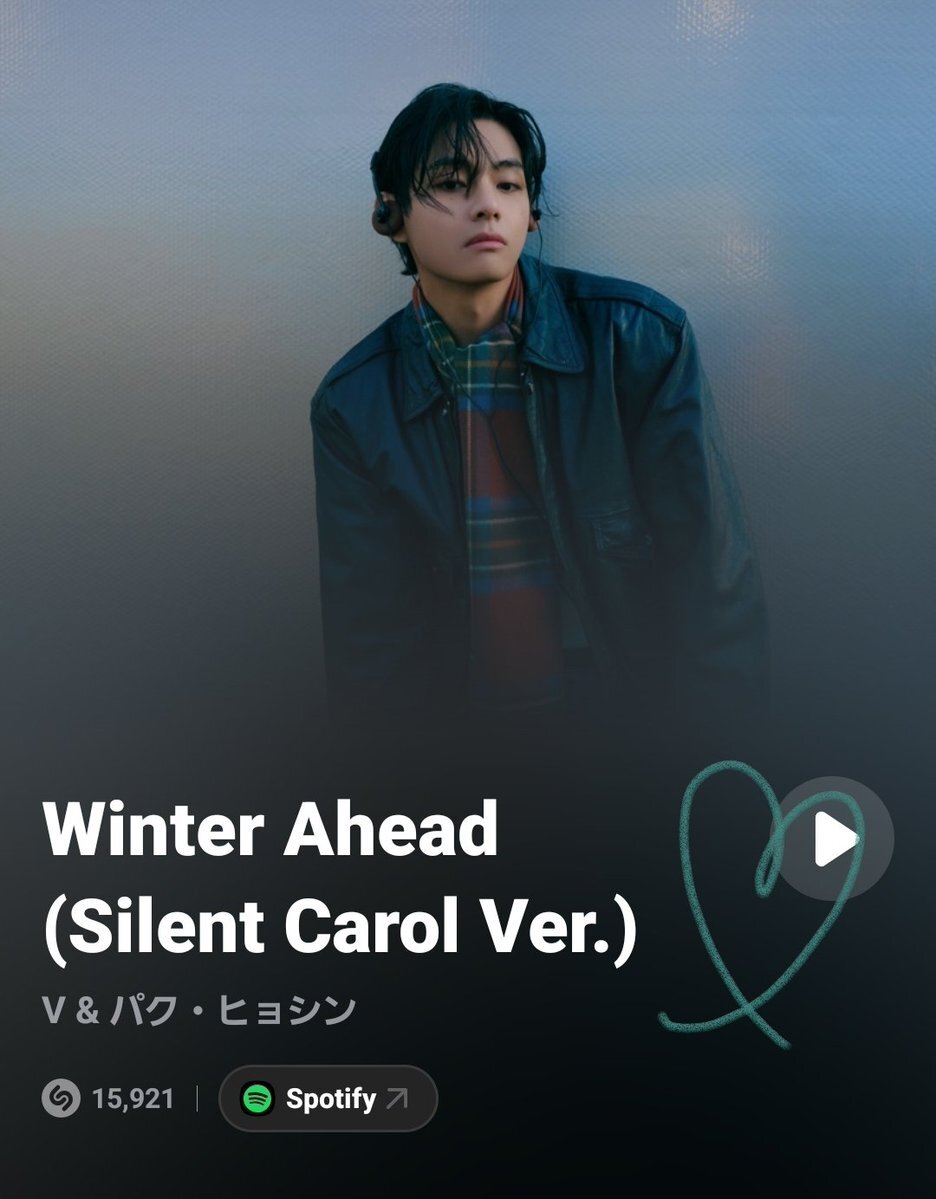 返信先:@streamfortaejpn🇯🇵shazam TOP 200 Japan 2025 11/17 V & パク・ヒョシンのWinter Ahead shazam.com/track/80396371… #WinterAhead #V #BTSV テテボラへ pic.x.com/KUydwA0Knl