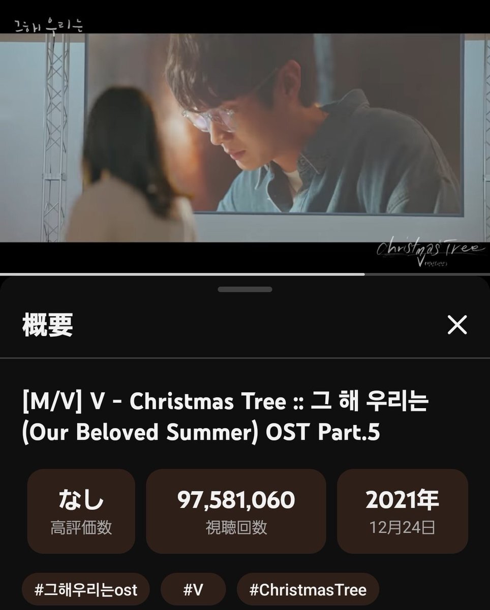 🐻️ テテ応援💚 Love listening to #V_ChristmasTree (#ChristmasTree) by gorgeous vocalist #V of #BTS@BTS_twt 1億回までもうすぐ! 視聴者回数97,581,060回❣️ 沢山聴いて応援📣✊ 🎼 youtu.be/lj8TV9q59P4 #WeLoveYouTaehyung pic.x.com/nKyzQcfjMY