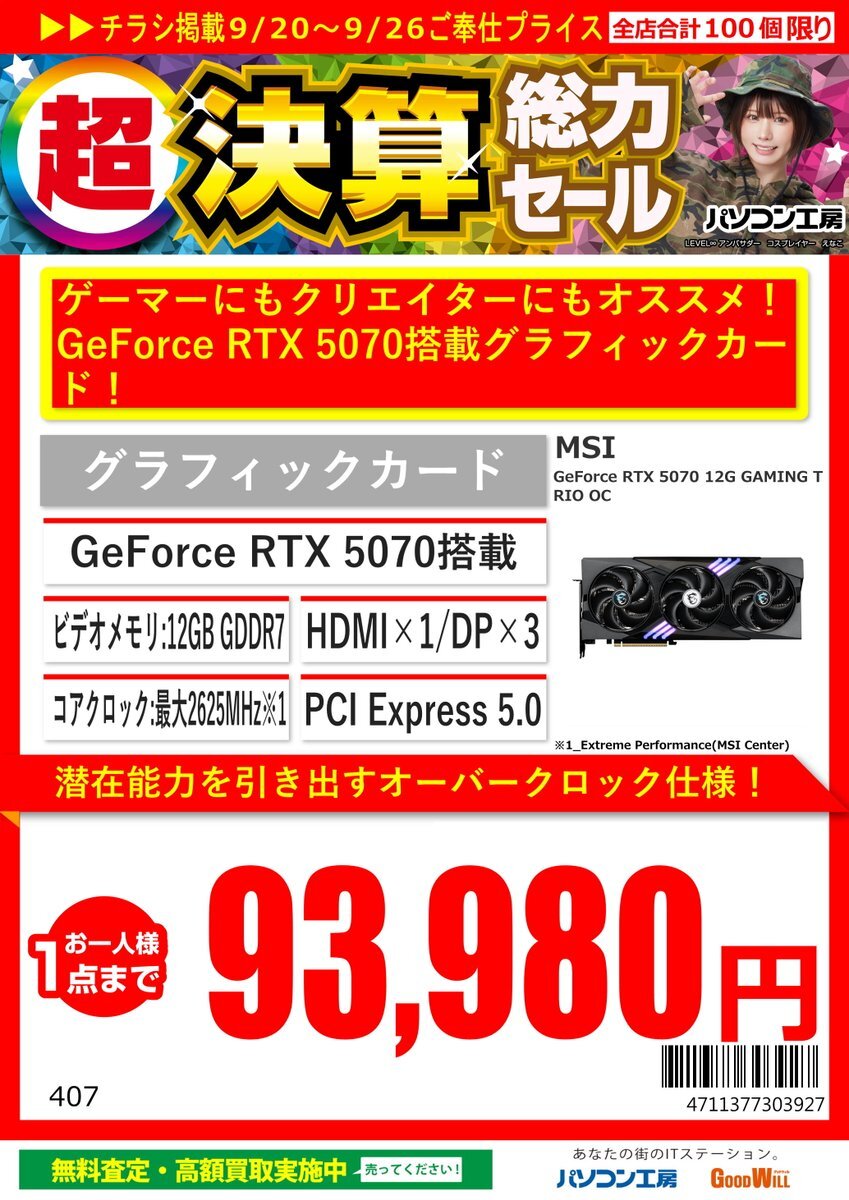 \🎊#超決算総力セール🎉/を開催中! 本日のお勧めはこちら! #MSI RTX 5070 12G GAMING TRIO OC #RTX5070 が9/26までお買い得になって販売中! 高性能GPUと大容量VRAM搭載 ゲームを快適にプレイしたい方にオススメです‼ #セール #VGA #ゲーム環境 #パソコン工房 #グッドウィル #山口 #宇部 pic.x.com/qkiBR98eZX