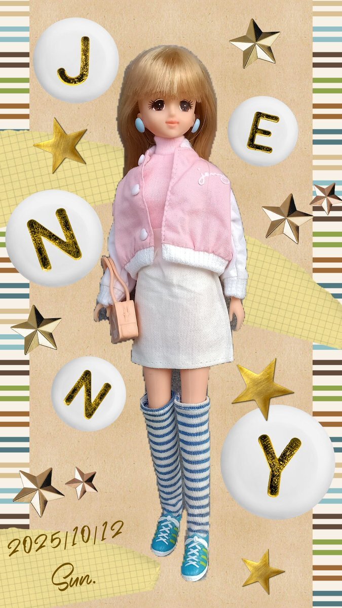 ネーム入りスタジャンでごきげんコーデ💕 スタジャンには、しましまロングソックス✖ミニスカートの組み合わせがバッチリ❗ パステルカラーで気分がウキウキしちゃうの🤭 #ジェニーなりきり選手権 #つーかタカラのジェニーチームなりきり選手権 #ジェニーぽえむ #ジェニー #雑オサレアドバイス #WEAR pic.x.com/UTyQL8HuRW