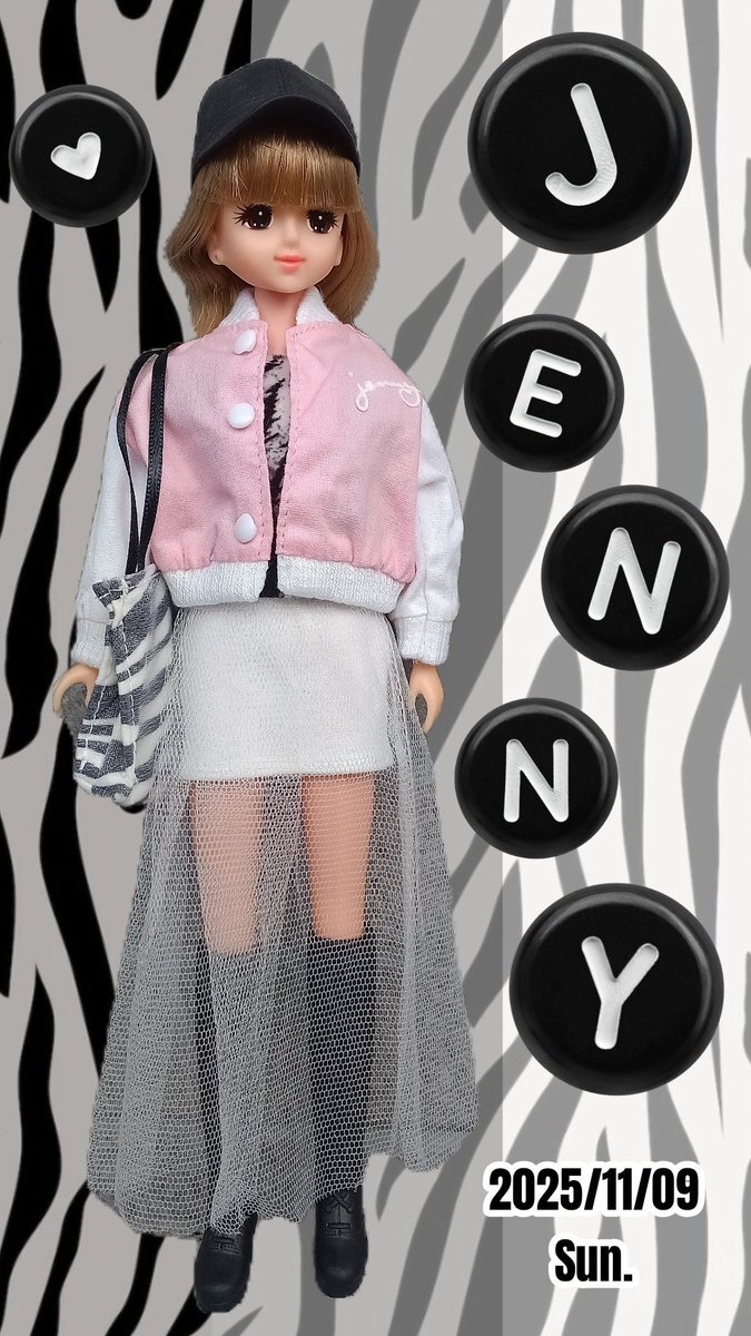 しましまゼブラ柄でキュート&クール🦓 ゼブラ柄インナーを軸にモノトーンコーデを組み立てて😉 ピンクのスタジャンで差し色入れたら、スニーカーじゃなくてロングブーツをチョイスするのがジェニー流❗ #ジェニーなりきり選手権 #つーかタカラのジェニーチームなりきり選手権 #ジェニーぽえむ #WEAR pic.x.com/6xUe2WX3o1