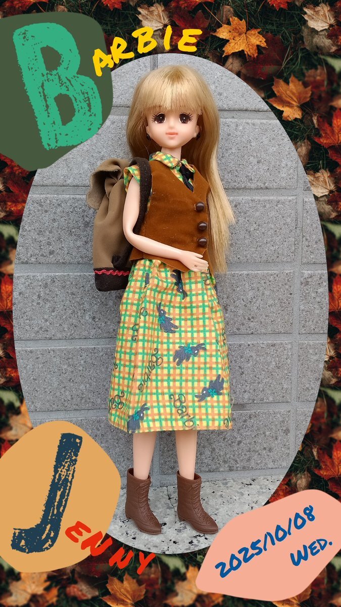 レトロなヴィンテージワンピ✖チョッキ🤎 懐かしいシルエットが可愛いジレは、昔風に「チョッキ」って呼びたくなっちゃうの😄 ブーツとの色味もバッチリ、気分はすっかり80年代ね❗ #ジェニーなりきり選手権 #つーかタカラのジェニーチームなりきり選手権 #ジェニーぽえむ #雑オサレアドバイス #WEAR pic.x.com/eTg3laIgh6