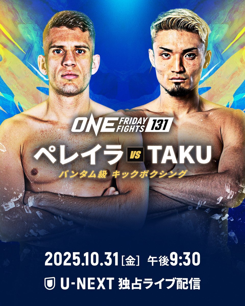 ◤⚡️ガブリエル・ペレイラ 🆚 TAKU⚡️◢ ONEデビュー戦のTAKU🇯🇵が #ONEFridayFights131 で ガブリエル・ペレイラと激突🔥 ✅ U-NEXTで独占ライブ配信をお見逃しなく 🗓 10月31日 午後9時30分 | #WeAreONE #ONEチャンピオンシップ pic.x.com/h1CQmjjuCT