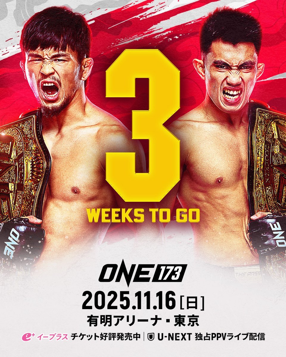 🚨📣#ONE173 チケット追加販売決定📣🚨 #ONE日本大会 の券売好調につき 新たにCAT 6の追加販売が決定🤩 ✅ 販売開始: 10月25日(土) 午後12時〜 🗓️ 11.16(日) 🏟️ 有明アリーナ 🎟️ イープラスでチケット販売中👉 bit.ly/ONE173_EPLUS 📡 U-NEXTでPPV発売中👉 bit.ly/ONE173_PPV_UNE… #WeAreONE pic.x.com/jrUVvM1dBf