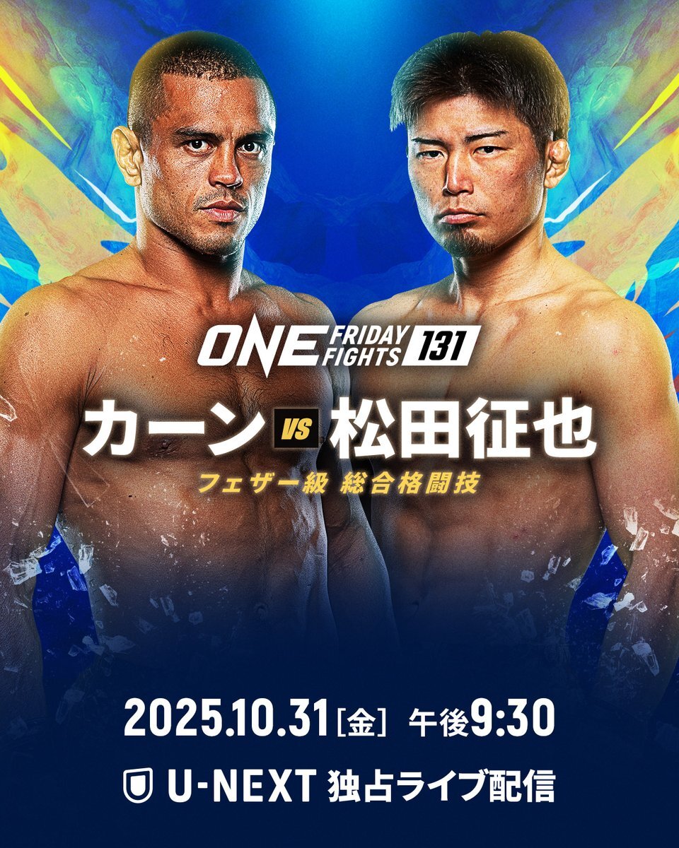 ◤⚡️アレックス・カーン🆚松田征也⚡️◢ ONE5戦目に臨む松田征也🇯🇵が #ONEFridayFights131 で アレックス・カーンと対戦🤯💥 ✅ U-NEXTで独占ライブ配信をお見逃しなく 🗓 10月31日 午後9時30分 | #WeAreONE #ONEチャンピオンシップ #総合格闘技 pic.x.com/tbE0eufsRf