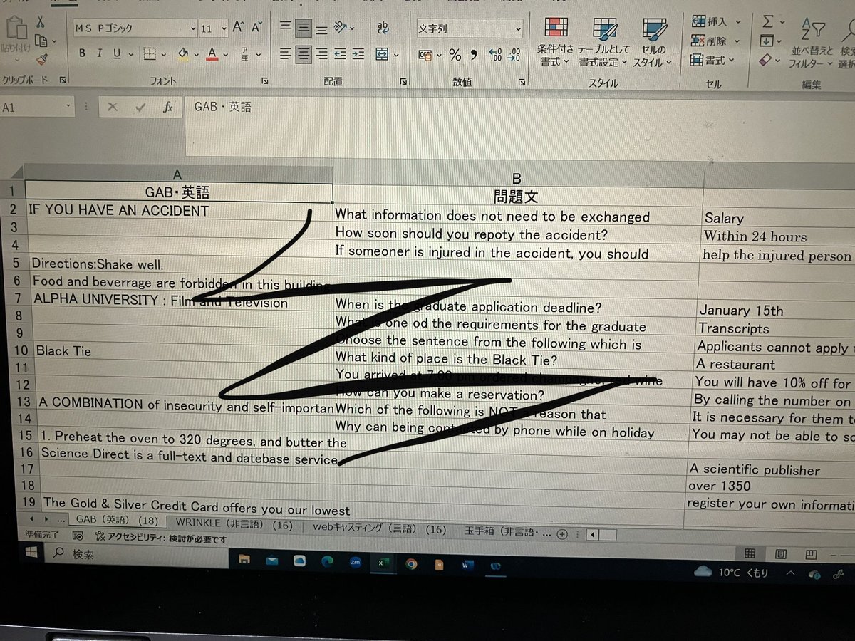自己紹介 大学:旧帝院 学年:27卒 バイト:塾 体育会:◎ 資格系:簿記 志望業界:商社、金融 求:cgab対策 譲:cgab(9月最新) ☝️コメントしてくれたらDM飛びます #就活 #27卒 #27卒と繋がりたい #cgab #就職活動 #webテ #webテスト #gab #テストセンター #テスセン