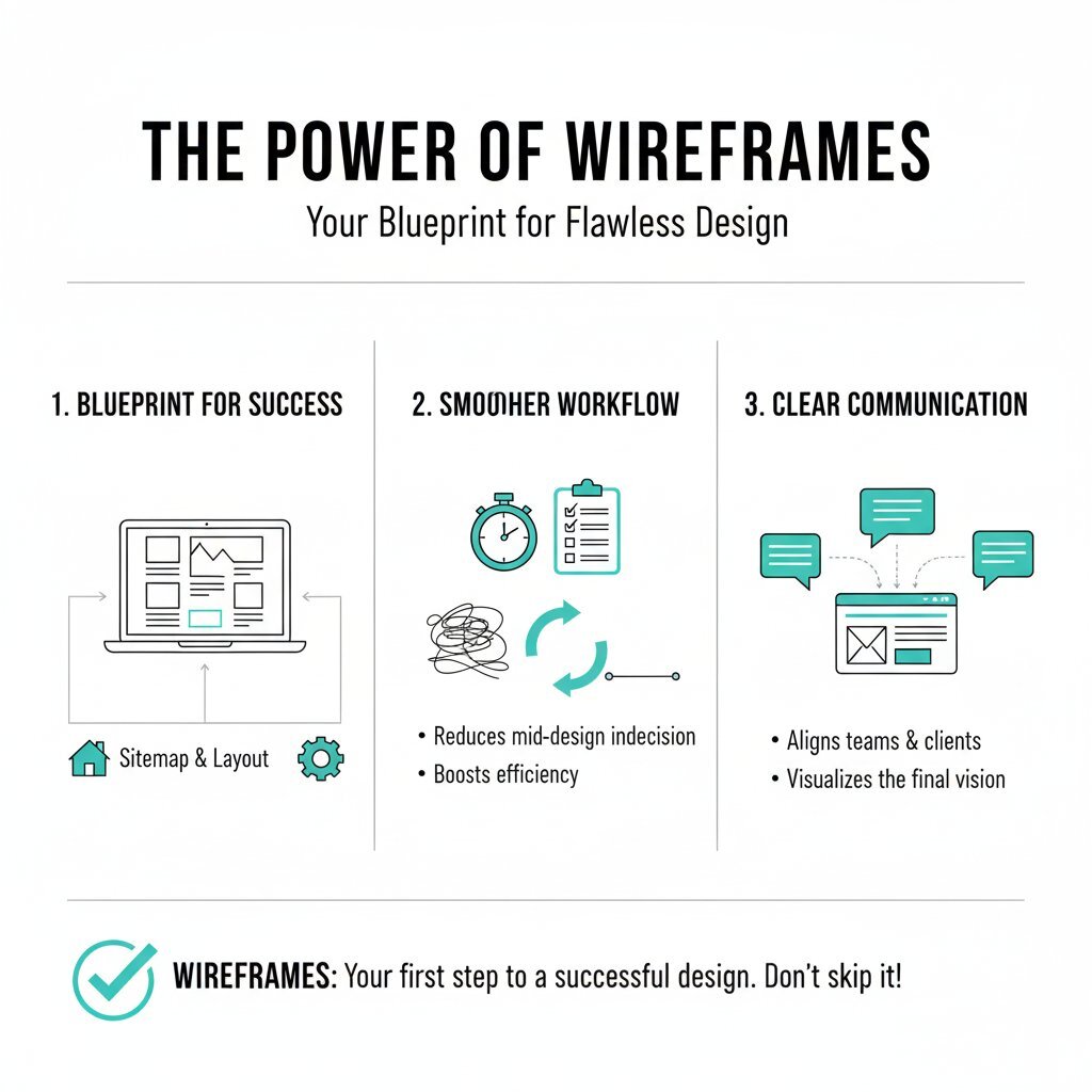 デザインに取り掛かる前に「ワイヤーフレーム」を作るのは、実はとっても重要! 設計図になる:どこに何を配置するか、先に決めることで後戻りを防ぐ スムーズな作業:デザインの途中で迷うことが減り、効率アップ イメージ共有:チームやクライアントと完成イメージを共有する #webdesign pic.x.com/RIF3qHaw8X