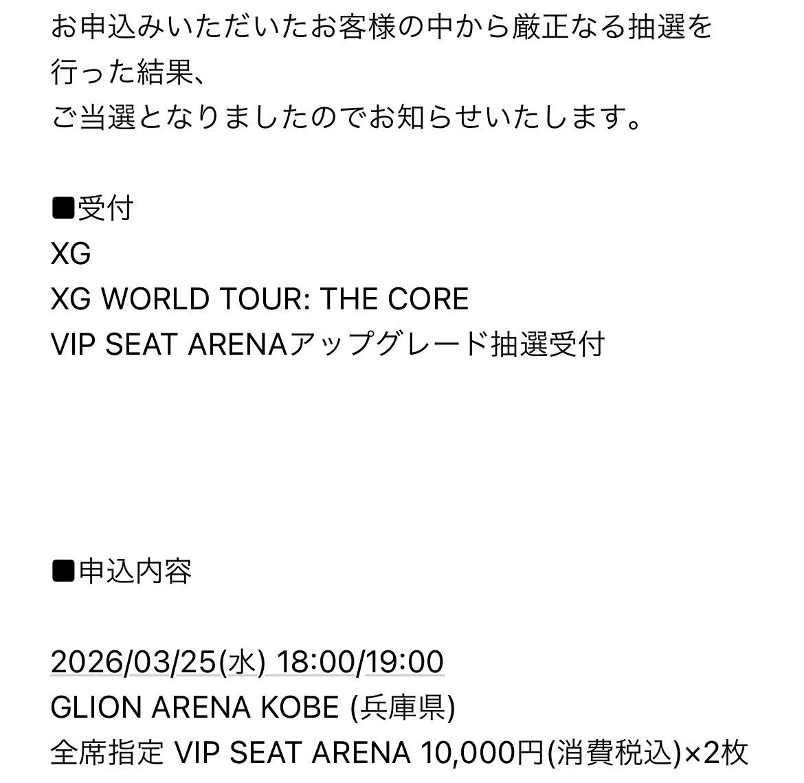 とりあえず1日目だけ申し込んでみたらやっぱ当たった! 初めての生XGがアリーナとかヤバすぎ!! ビギナーズラックや✨ #XG_WorldTour_THECORE #XG #XGALX pic.x.com/o5qwiNzrTr