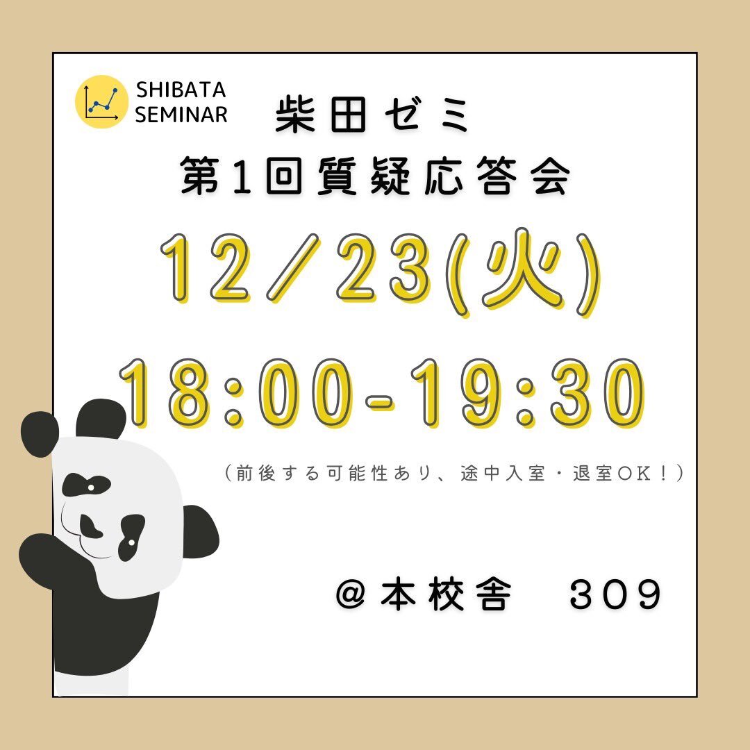 【質疑応答会のお知らせ📢】 📅12月23日(火)18:00〜19:30 気になることや不安なことなど、柴田ゼミ生に個別質問ができるチャンス✨👀 本校舎309でお待ちしています🤍 #YCU #柴田ゼミ pic.x.com/qYZxmBc9p2