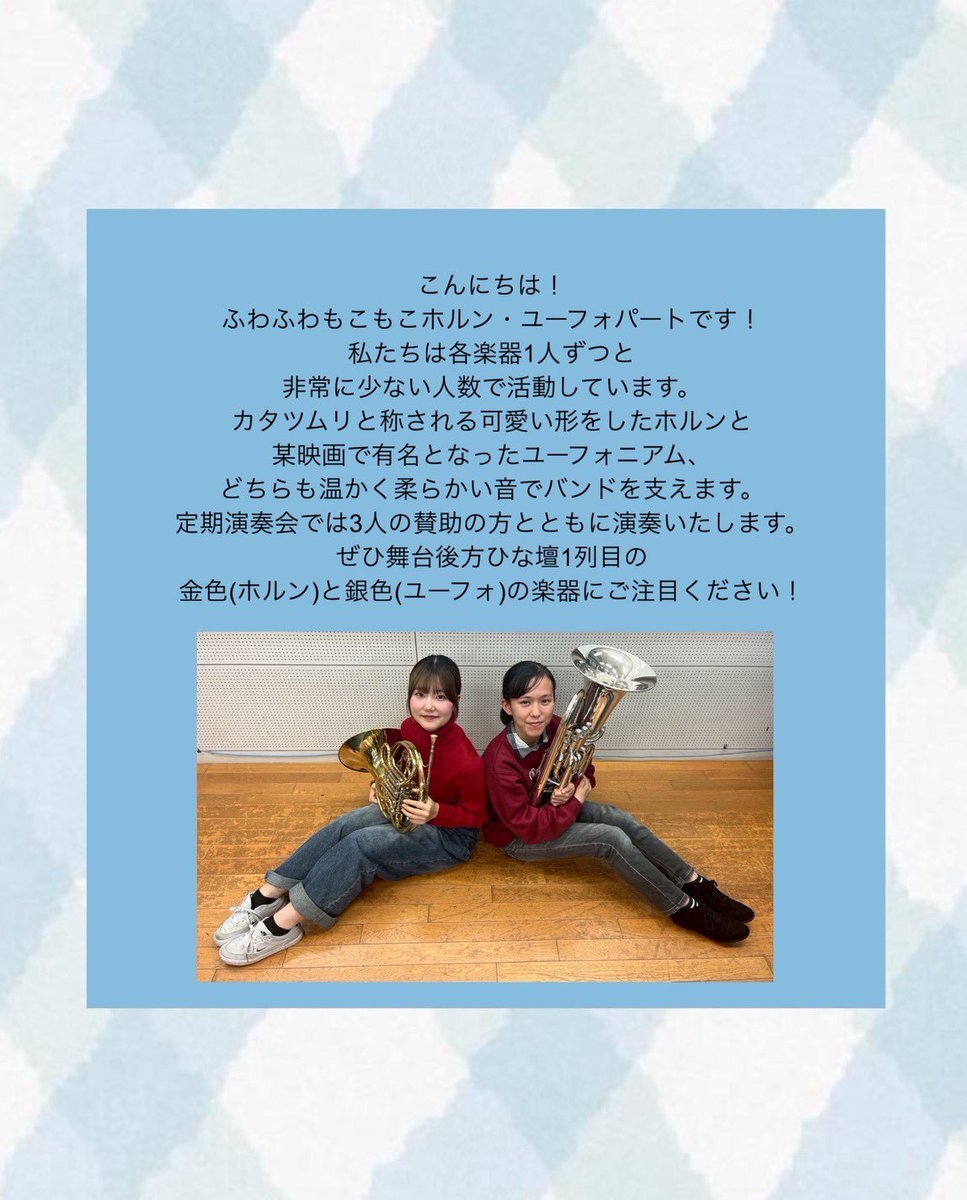 【定演まであと6日】 吹奏楽団「奏」です! 本日はHrとEuph、Tub、Percの4パートを紹介します!🎶 お知らせ📢 定期演奏会 12/27(土) 13:00開場 13:30開演 会場 港南公会堂 入場無料です!ぜひおこしください✨ #横浜市立大学 #ycu #吹奏楽 pic.x.com/tDUqaEfFde