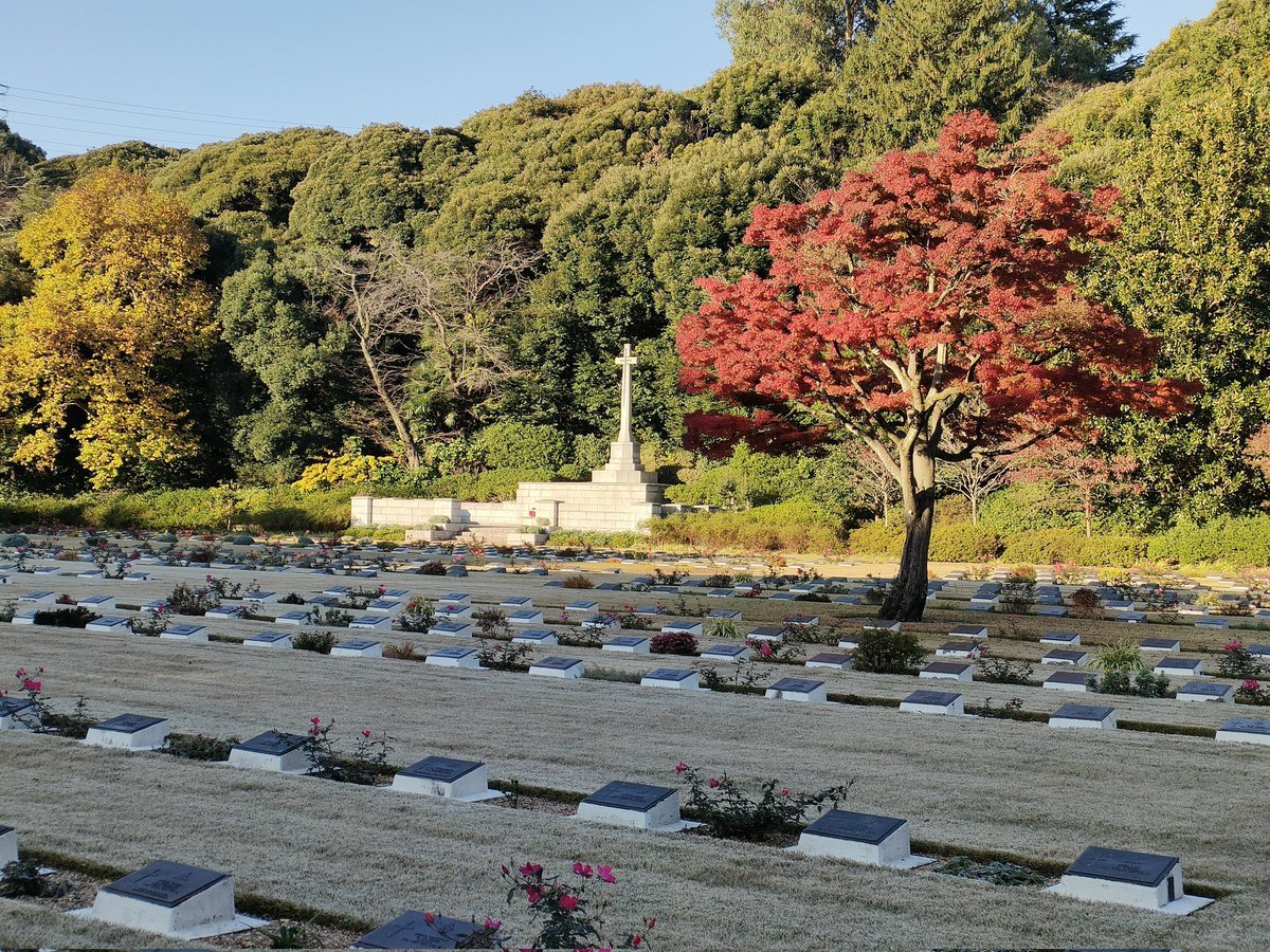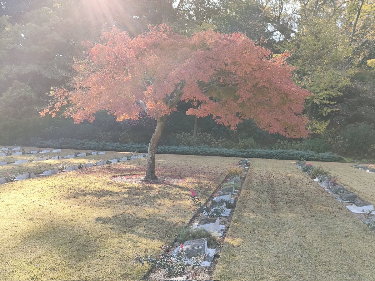 青空に紅葉が綺麗です。メタセコイヤも紅葉真っ盛り。 今日は暖かいので、蝶々も遊びに来ました。 #横浜 #yokohama #CWGC #YokohamaWarCemetery #英連邦戦死者墓地 #保土ヶ谷 #蝶々 pic.x.com/lCHylRSFpl
