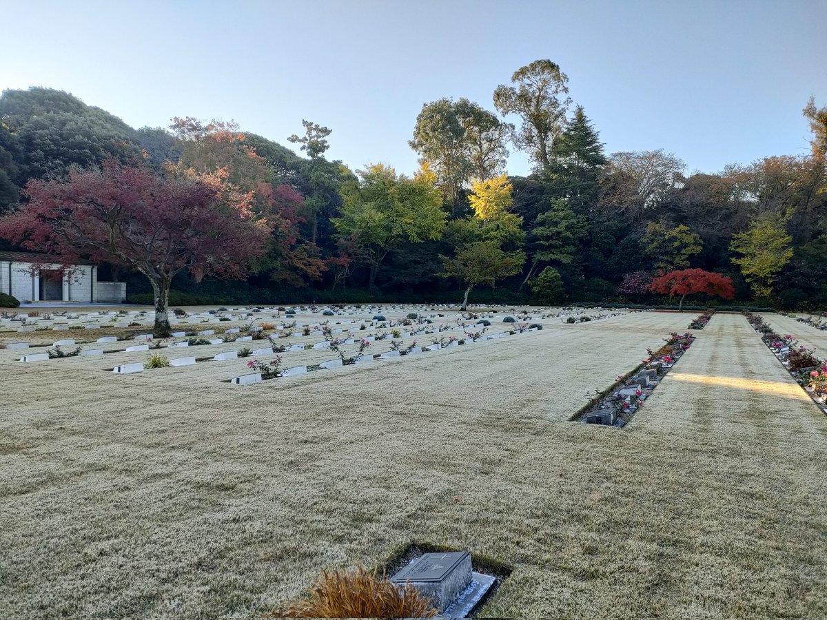 今朝は芝生に霜が降りていました。しかし、日中は暖かくなるようですね。 #横浜 #yokohama #CWGC #YokohamaWarCemetery #英連邦戦死者墓地 #保土ヶ谷 #霜 pic.x.com/JqF1KPCwwa
