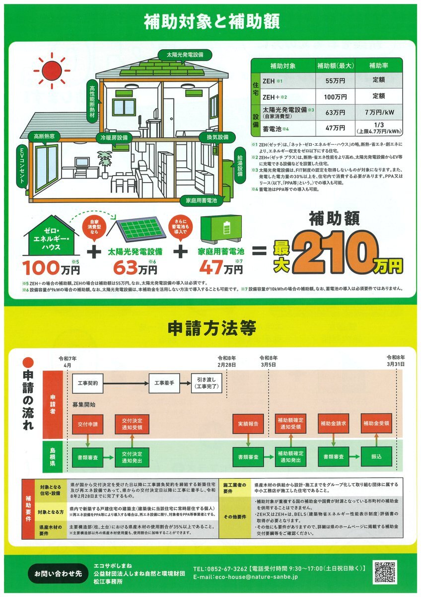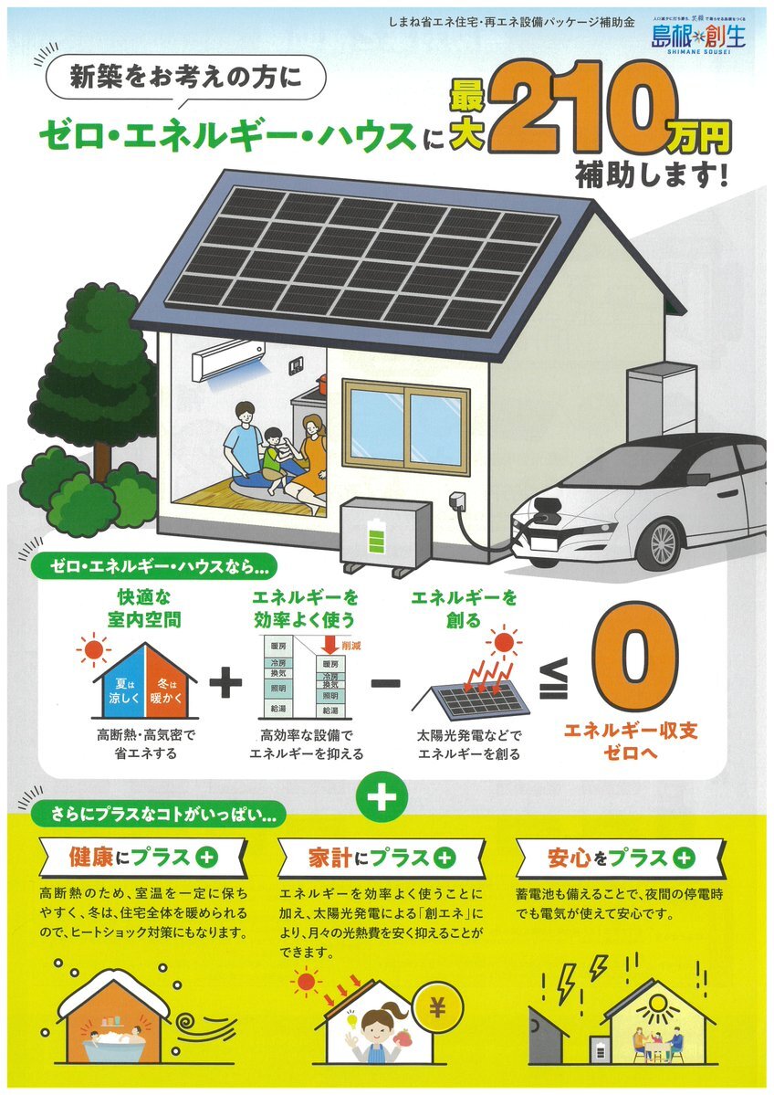【しまね省エネ住宅・再エネ設備パッケージ補助金】 ZEH(ゼロ・エネルギー・ハウス)の新築住宅に最大210万円の補助金がもらえます。 #ZEH #島根県 pic.x.com/BxtkP0gKcv