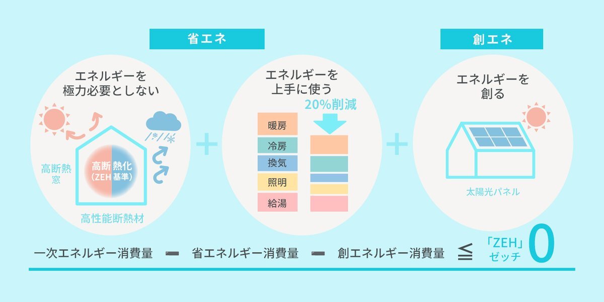 ZEH(ネット・ゼロ・エネルギー・ハウス)は、高い断熱性と省エネ設備で年間の一次エネルギー消費量をゼロ以下にする住宅です。💡 #ZEH #省エネ 1/4