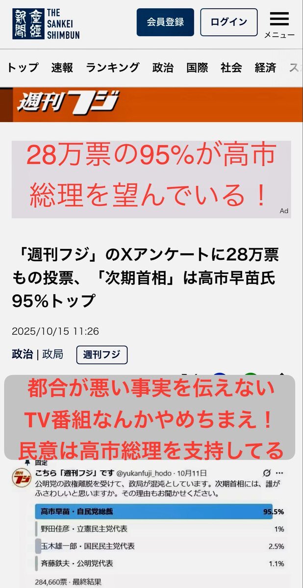 #報道ステーション #news23 #zero そもそも誰が野党の政権交代なんか望んでいるんだ? 民意は明らかに高市早苗が次期首相就任を望んでいるぞ! 28万人もの投票で明らかじゃないか! TV各局が揃いも揃って高市総理の阻止&反日立憲の援護射撃とは コレじゃもう誰もTVなんて信用しない わかってんの? pic.x.com/d3hHQzbenm