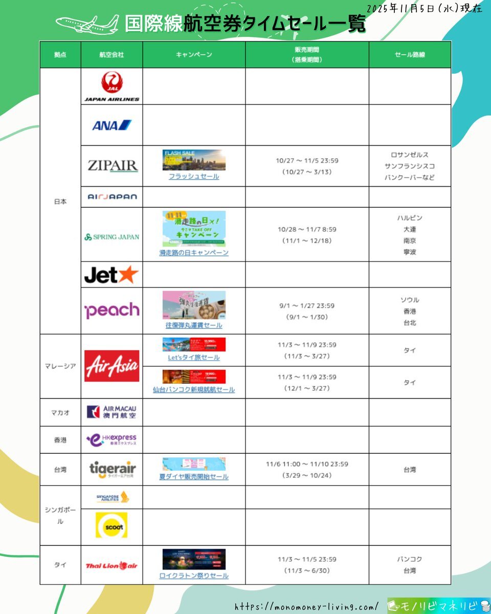 モノリビマネリビ(航空券タイムセール情報)@monolivi_flight