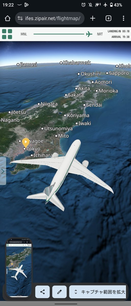 ZIPAIRのフライトマップのこの画面 大きさバグってて好きwww #ZIPAIR pic.x.com/S1EkfGcgHj