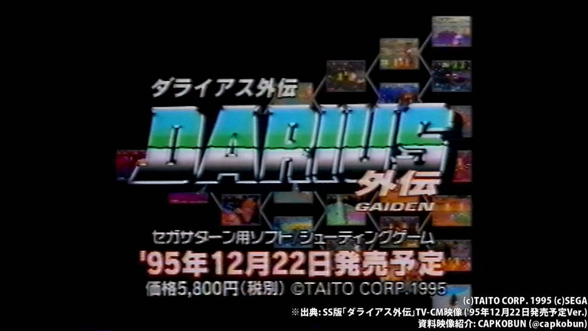 SS版 #ダライアス外伝 の発売日は1995年12月15日… の筈ですが、今回発掘した1995年11月放送のCM内では、発売予定日が【12月22日】となっていました。 こ、これは一体…? シリーズに詳しい方なら分かるでしょうか? #タイトー #セガサターン #ダライアス #ダライアス外伝30周年 #ZUNTATA #資料映像 pic.x.com/oJNTaru5Ju x.com/capkobun/statu…