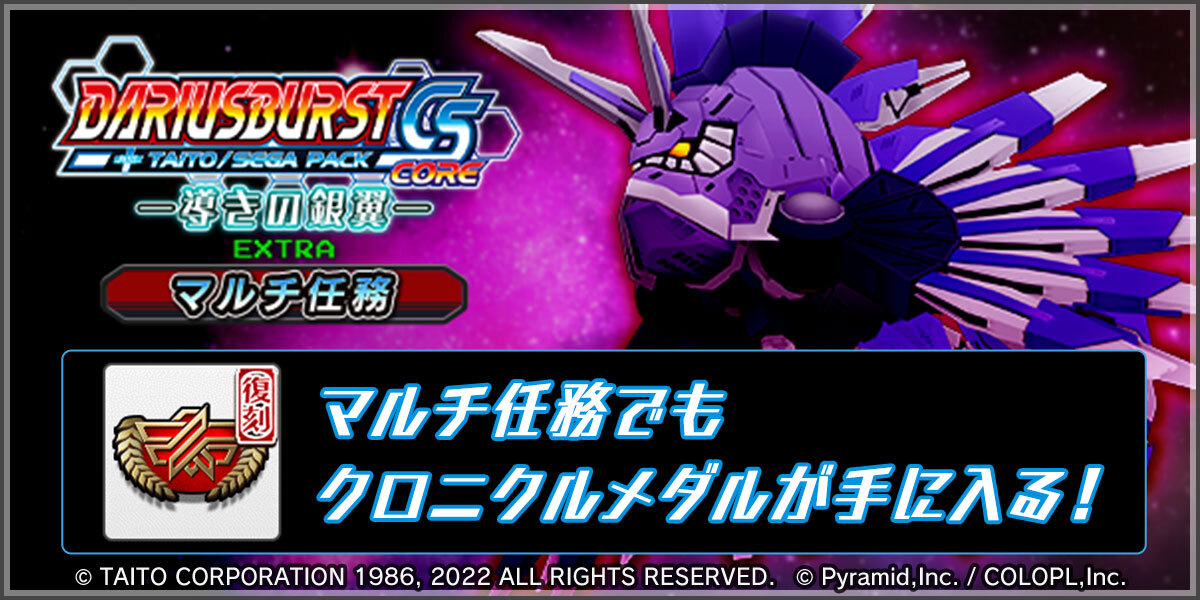 『ダライアスバーストCSコア』コラボイベント <―導きの銀翼― EXTRA>が新要素を追加して復刻🎉 #ダライアスお披露目の日 ⬇記念セールも実施中⬇ taito.co.jp/sale #ダライアス #ZUNTATA #アリスギア