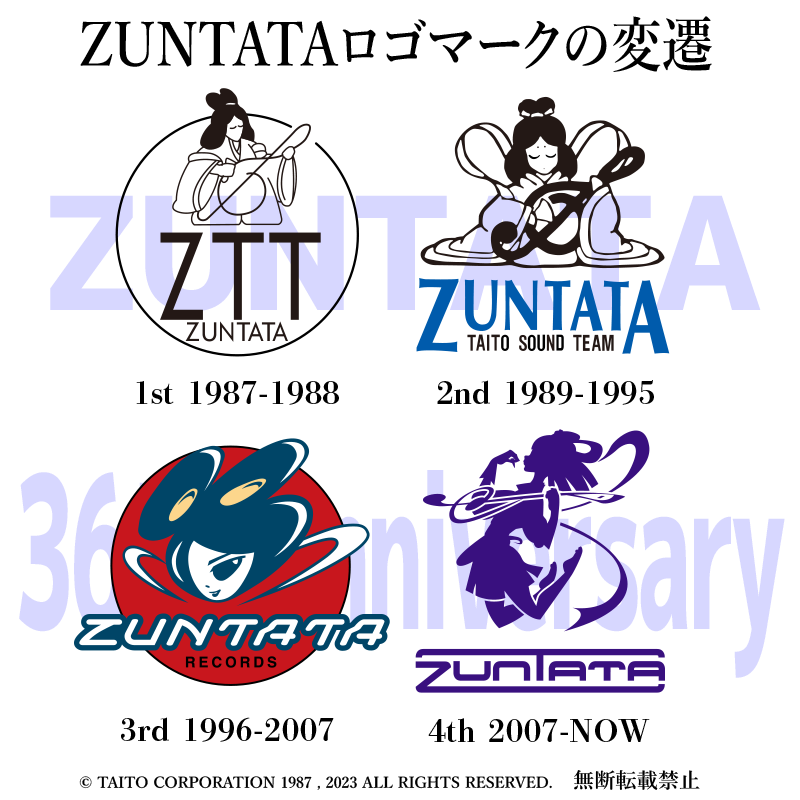 ZUNTATAのロゴは36年間の歴史の中で4回変わりました。どれも音楽・芸能の神様である弁財天をメインモチーフにしてその時代に合わせたロゴマークになっています。 #ロゴマークの日 #ZUNTATA pic.x.com/LzffL3eiiF