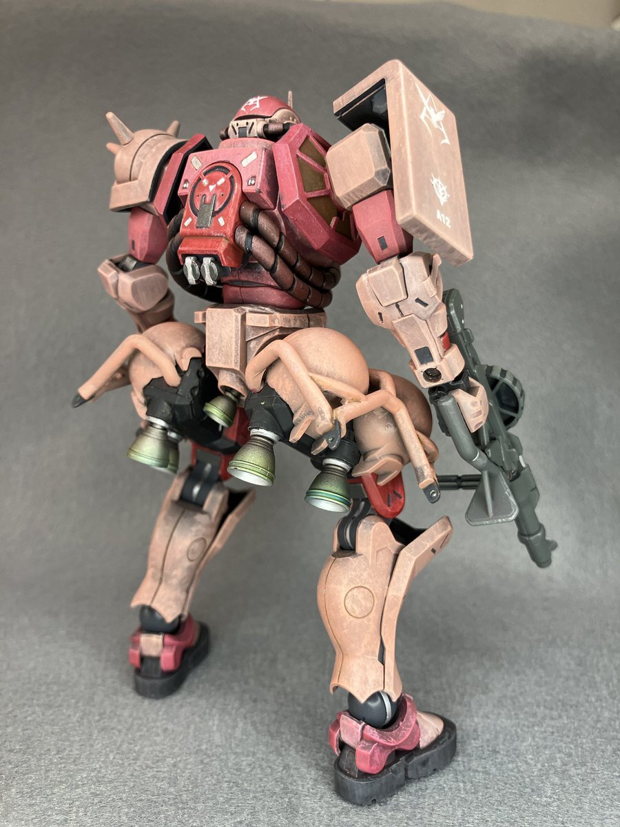 HG GQシャアザク、完成!(キットは元々緑ザク) 黒下地から白ドライブラシで濃淡作って基本色塗装(エアブラシでもよい)→細部を筆で塗り分け これ結構時短でいいかもしんない。下地をどう描くか、が全てになってくるな #acpgarage pic.x.com/d0UAqDLSHE