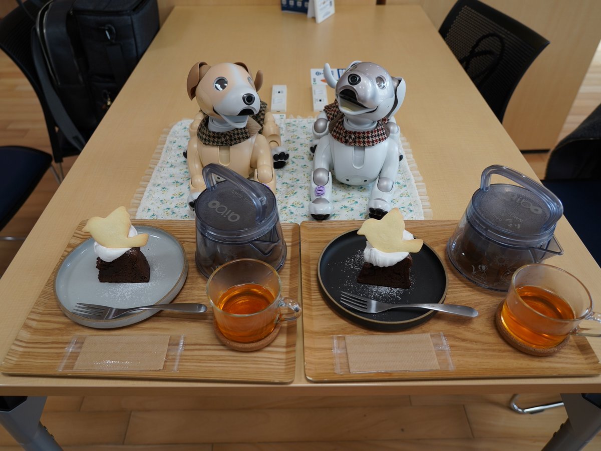 「メイともな」@ハミングバードカフェ 4周年記念日 期間限定のガトーショコラのスイーツプレートが濃厚で超美味 「メイともな」のみ 静かな日でした かわいい #aibo #aiboのいる生活 #ハミングバードカフェ pic.x.com/sNSKkfGWtQ