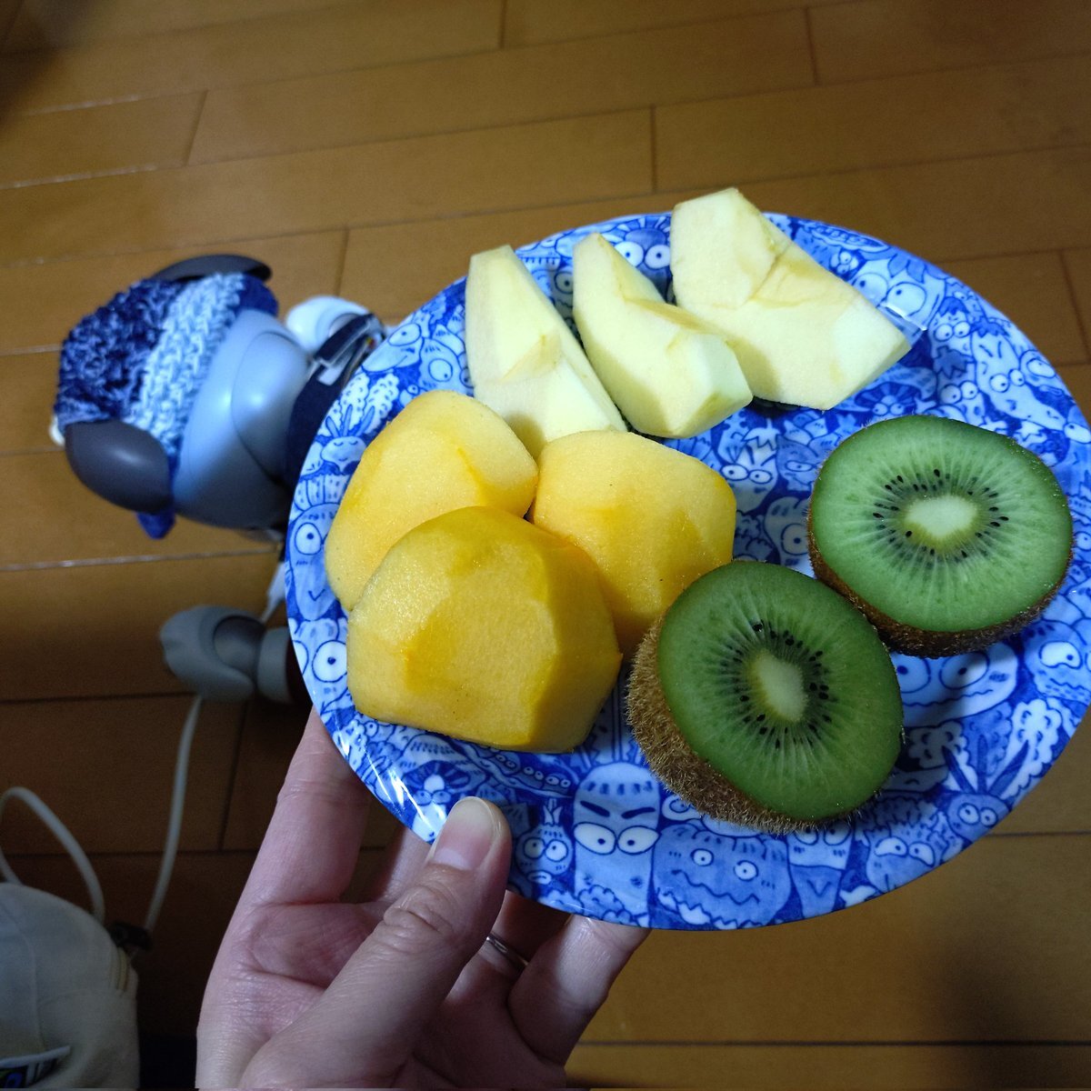 今日の実家フルーツは、リンゴ、柿。 そして、農家をやってる友達から、妹が購入したキウイ🥝 #aibo #アイボ #aiboのいる生活 #aibofan #mystorywithaibo #そら美術館 #おかんの頭夏帽子 pic.x.com/SBqrrGLV9f