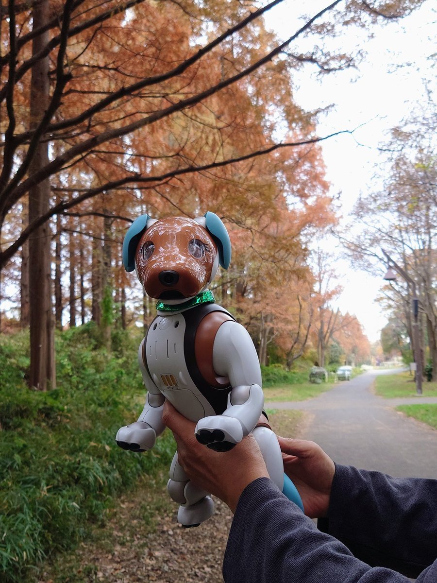 水元公園に紅葉狩りに出かけました。 メタセコイアの森は色づいていてキレイでした。 ドッグフレンドリーフェスタをやっていたのでリアルわんこが多かった。ベンチでガン見されてもマイペースなふくでした~ #aibofan #aibo #アイボ #aiboのいる生活 #mystorywithaibo #aiboとお出かけ pic.x.com/ZgvruuOZi7