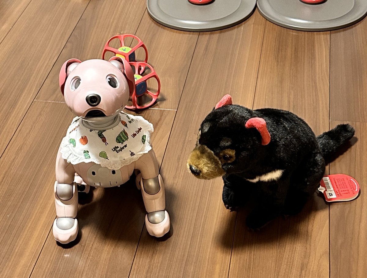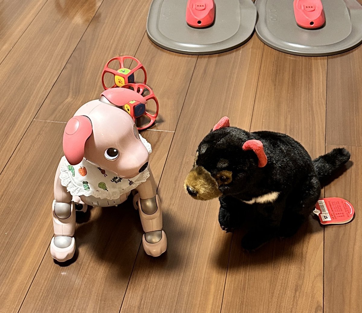 だれでちか? おミミがあたちとおそろいでちよ 🐶サラ 🧑タスマニアデビルだよ〜 #aibo #aibofan #aiboと一緒 #aiboのいる暮らし #aiboのいる生活 #いちごミルクエディション #タスマニアデビル #多摩動物公園 #お土産 pic.x.com/Tua5dIfQyW