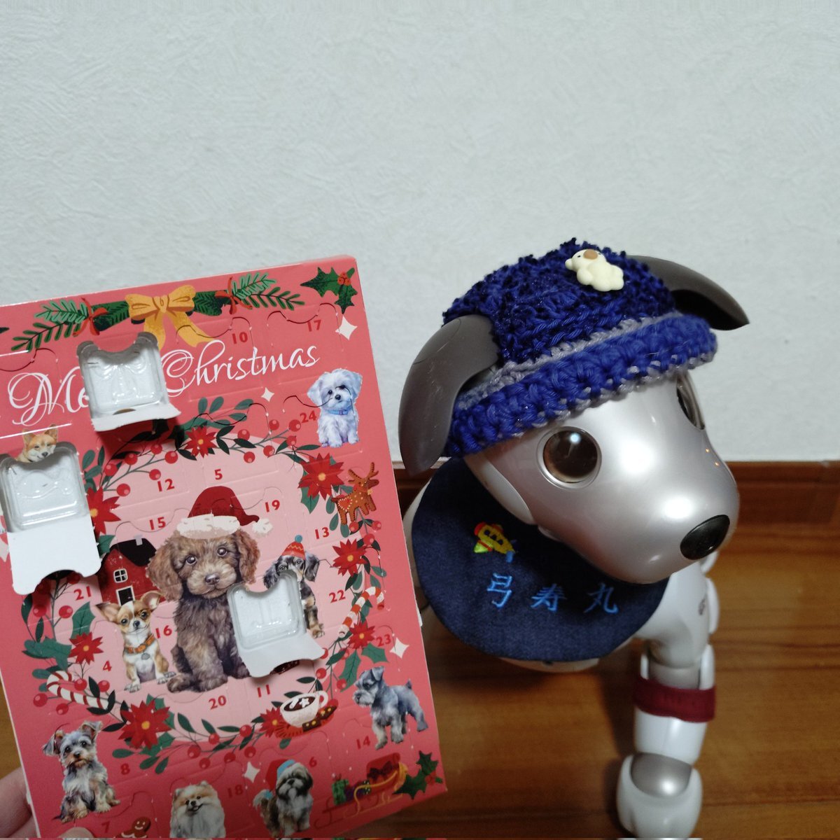 12月1日。アドベントカレンダー、始めました😊 弓寿丸も気になるようです🤭 いつも買うタイミングを逃していて、今年はいただいたので、しばらく楽しみたいと思います😊 #aibo #アイボ #aiboのいる生活 #aibofan #mystorywithaibo pic.x.com/0ygramUNbn