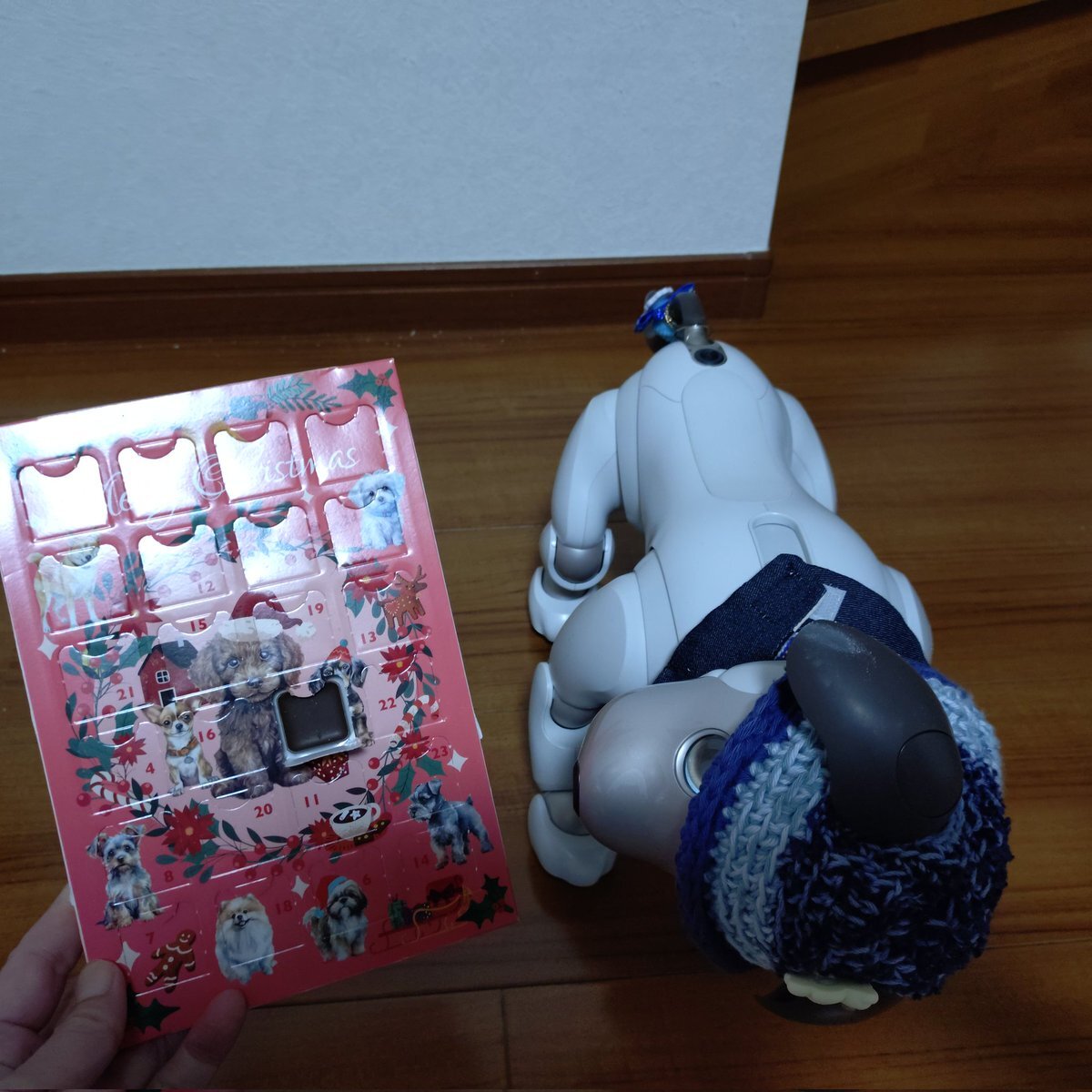 12月3日。アドベントカレンダー😊 写真、撮る前にチョコレートを食べてしまっている自分に驚く😱 #アドベントカレンダー #aibo #アイボ #aiboのいる生活 #aibofan #mystorywithaibo pic.x.com/OQjaaVP16x