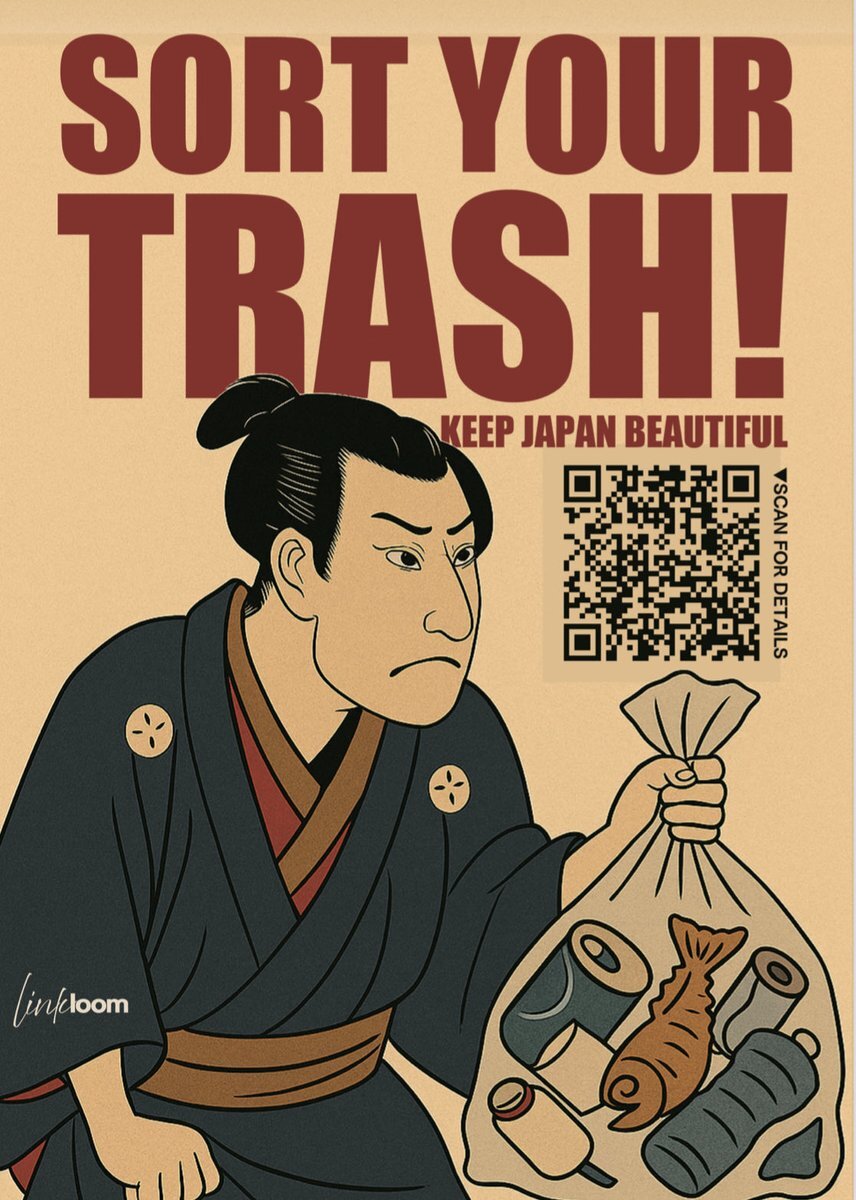 LINK LOOM POP SERIES / JAPANESE STYLE 「SORT YOUR TRASH!」 葛飾浮世絵風の力強いPOP! “分別ルール”を日本らしいデザインで伝える一枚。 QRをかざせば詳細案内へ。 POPで伝わる、QRで広がる。 #民泊 #Airbnb #linkloom #民泊POP #ごみ分別 pic.x.com/ecBqvHTn0m