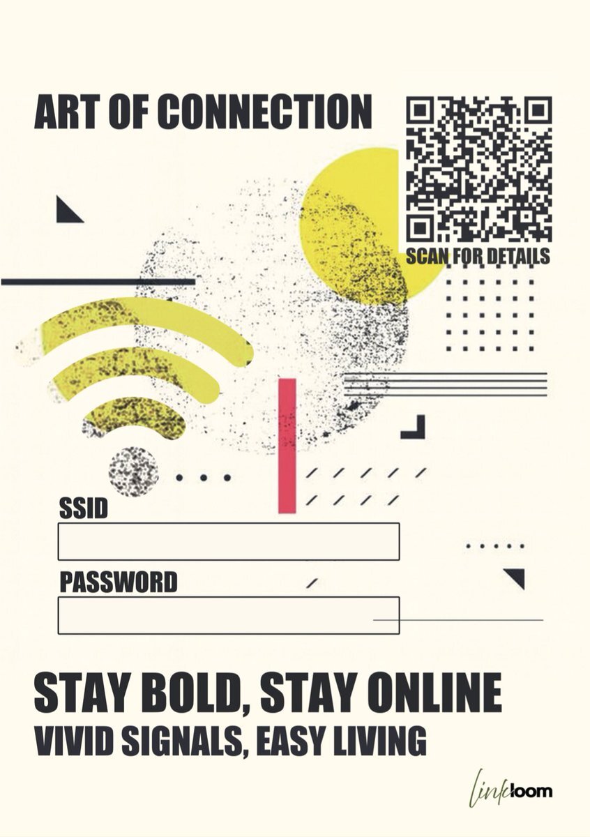LINK LOOM POP SERIES / ART STYLE 「ART OF CONNECTION」 抽象アートのような構成で、Wi-Fiをスタイリッシュに。 色と形で“つながる心地よさ”をデザインしました。 QRをかざせば接続もスムーズ。 POPで伝わる、QRで広がる。 #民泊 #Airbnb #linkloom #民泊POP #WiFiPOP pic.x.com/zsPRnoJkFN
