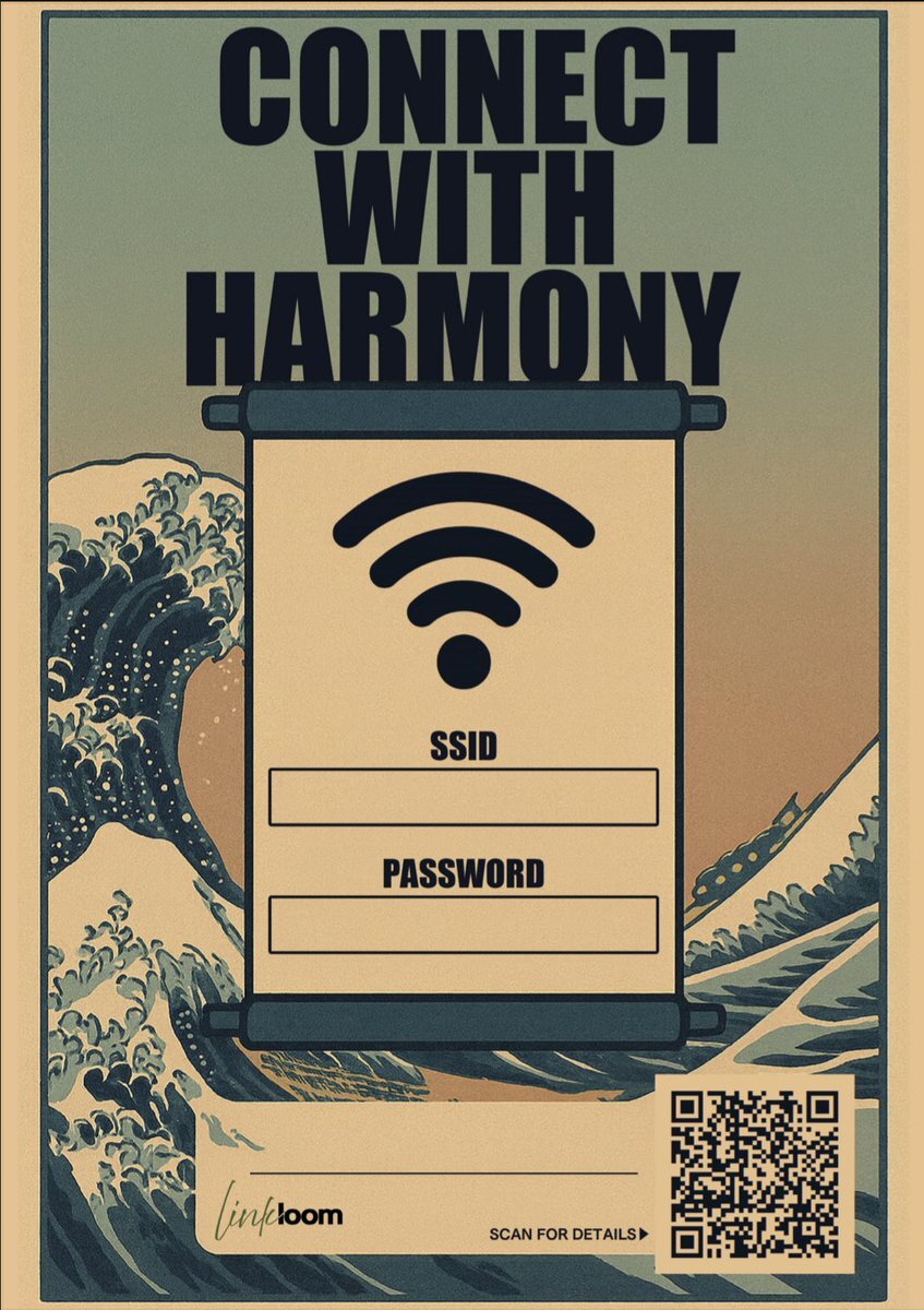 LINK LOOM POP SERIES / JAPANESE STYLE 「CONNECT WITH HARMONY」 浮世絵の波を背景に、“つながり”を静かに描いたWi-Fi POP。 伝統とモダンが調和する一枚です。 QRをかざせば詳細案内へ。 POPで伝わる、QRで広がる。 #民泊 #Airbnb #linkloom #民泊POP #WiFiPOP pic.x.com/EPk6UXQy1k