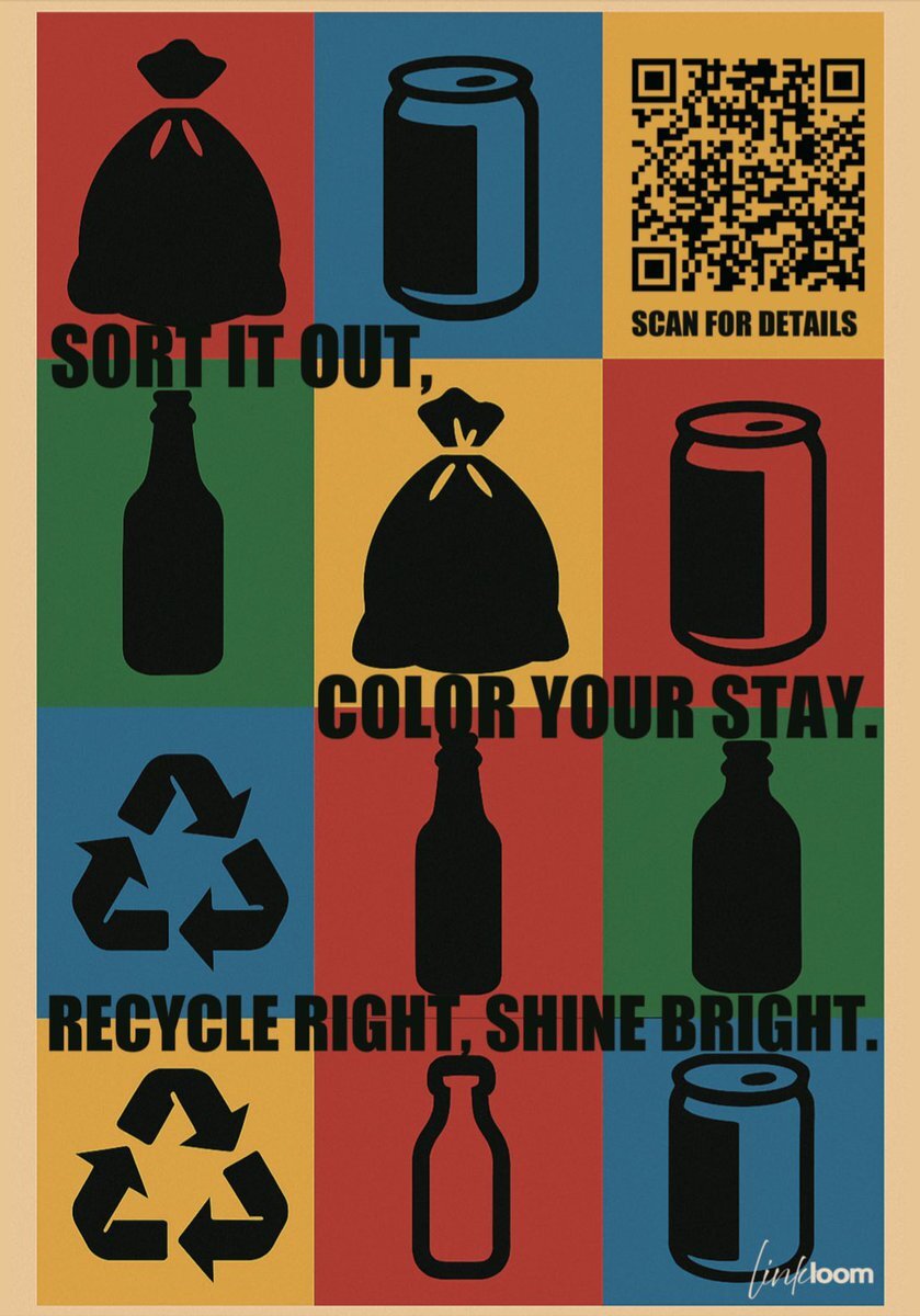 LINK LOOM POP SERIES / ART STYLE 「SORT IT OUT, COLOR YOUR STAY.」 カラーブロックで構成された、アートのようなごみ分別POP。 “分ける”を“彩る”に変える、link loomらしいデザインです。 POPで伝わる、QRで広がる。 #民泊 #Airbnb #linkloom #民泊POP #ごみ分別 pic.x.com/1J53qWd1OE