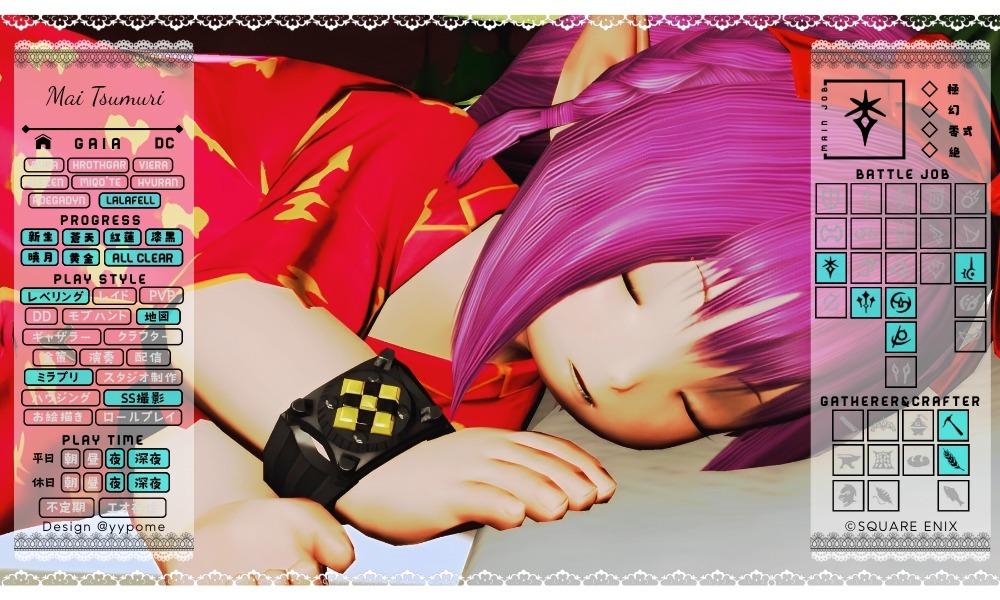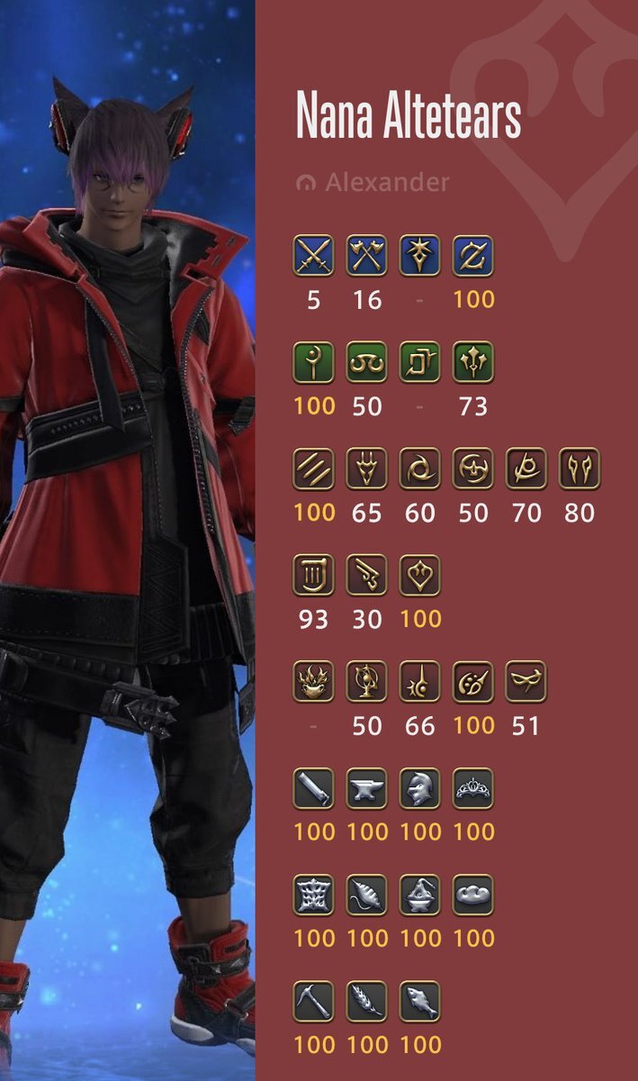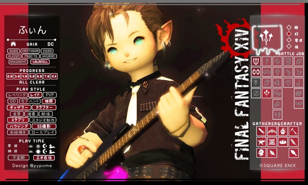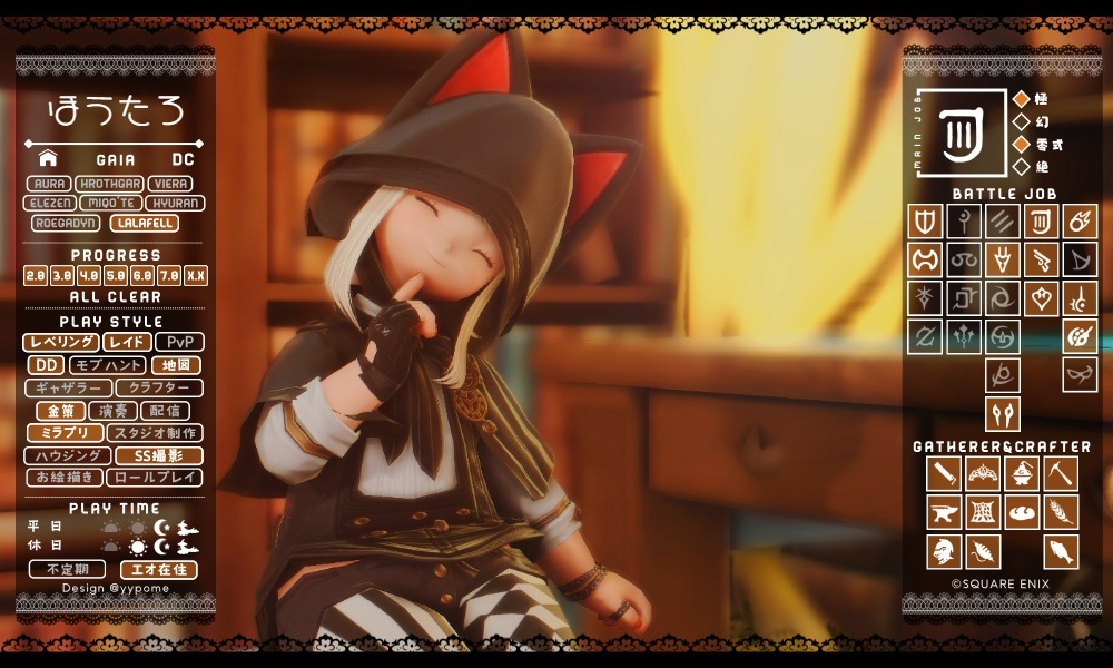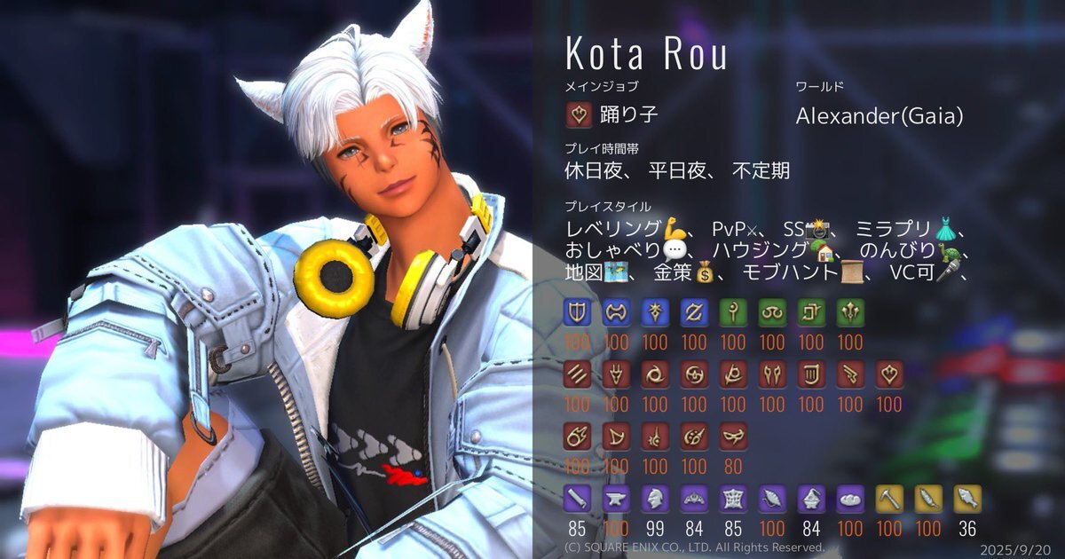 ド深夜に投下🐈⬛ 基本ぼっちで遊んでるので、一緒に遊んでくれるフレンドさんほしいです🥺 周回とかお店やスタジオ行ったりとか色々やりたい🥺 キャラカード?ないので、コンパニオンアプリの情報で失礼しますだ! #FF14 #GaiaDC #Alexander #FF14フレンド募集 #オスッテ pic.x.com/kLcancf2Ks
