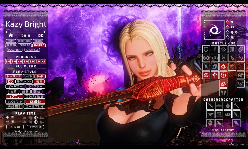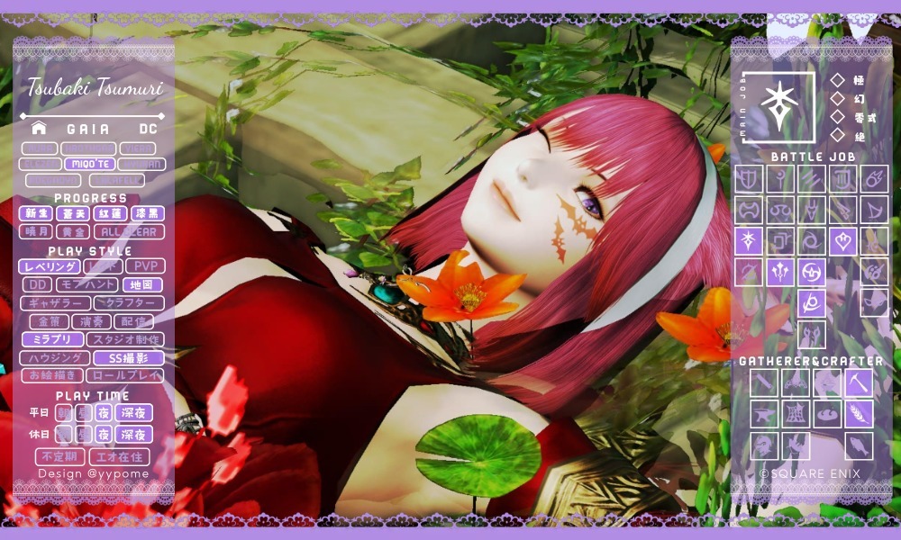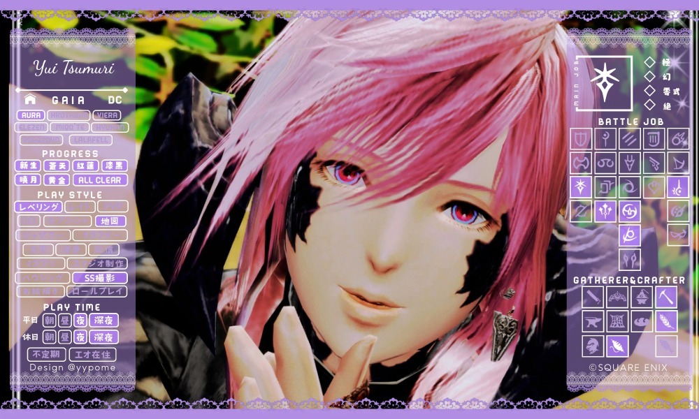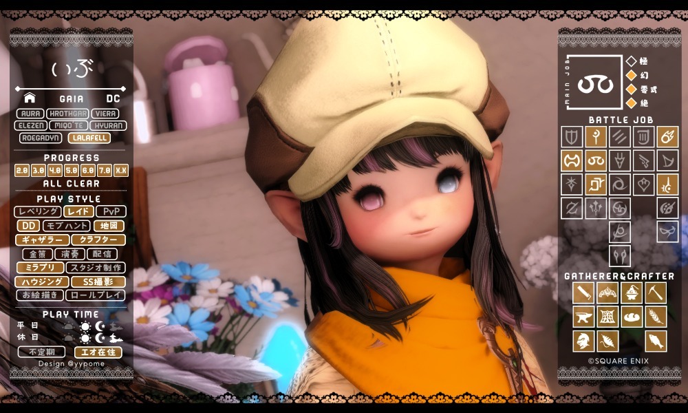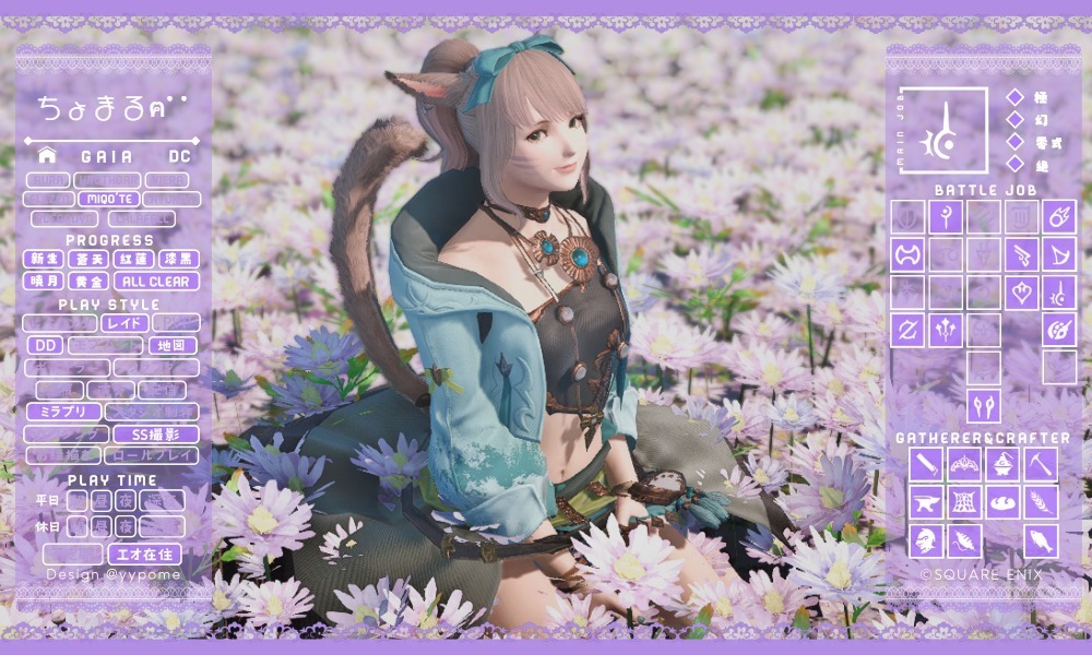 11月になったのでキャラカ更新🌸 かおるさんが休止しているので、隣にかおるさんのいないスクショは寂しいです。 幻は死にながらクリアして、新しいDDにも挑戦しています。 アチブも少しずつ増えています(*´꒳`*) #キャラカ #FF14 #FF14キャラクターカード #GaiaDC #Alexander pic.x.com/ppBC3hpoRG
