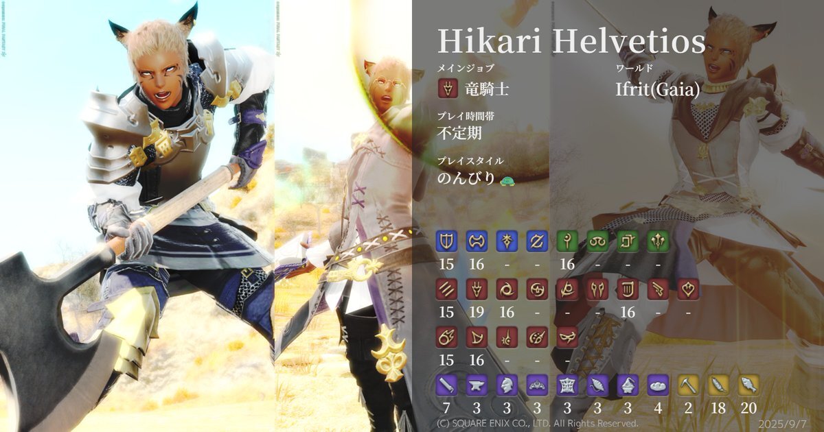 🆕黄金入り記念&10月更新📷 25.06.01 start!の新米ヒカセン✨ タンク、DPSが好きな脳筋(゚Д゚) 戦闘も好きだけどSS撮影、イベント巡り、ミラプリ、ハウジング、ギャザクラ、地図...etc 主に生活系コンテンツが好きです📷 #FF14 #キャラカ #FF14キャラクターカード #GaiaDC #Alexander #オスッテ pic.x.com/iFN9dafqen