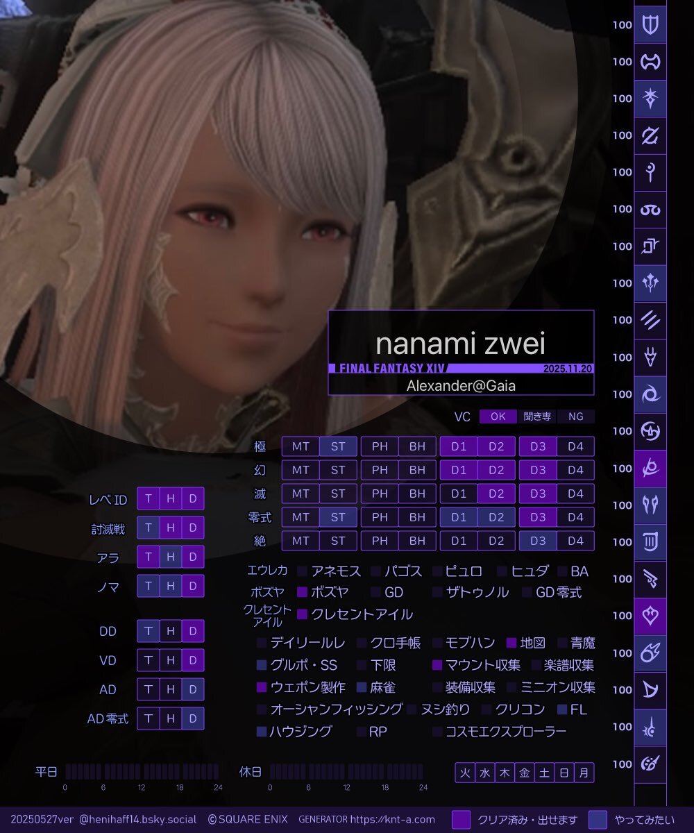 サンシからムンキに戻ったので更新✨ characa.kkimu.dev #キャラカ #FF14 #FF14キャラクターカード #GaiaDC #Alexander pic.x.com/SwXIRhleBS