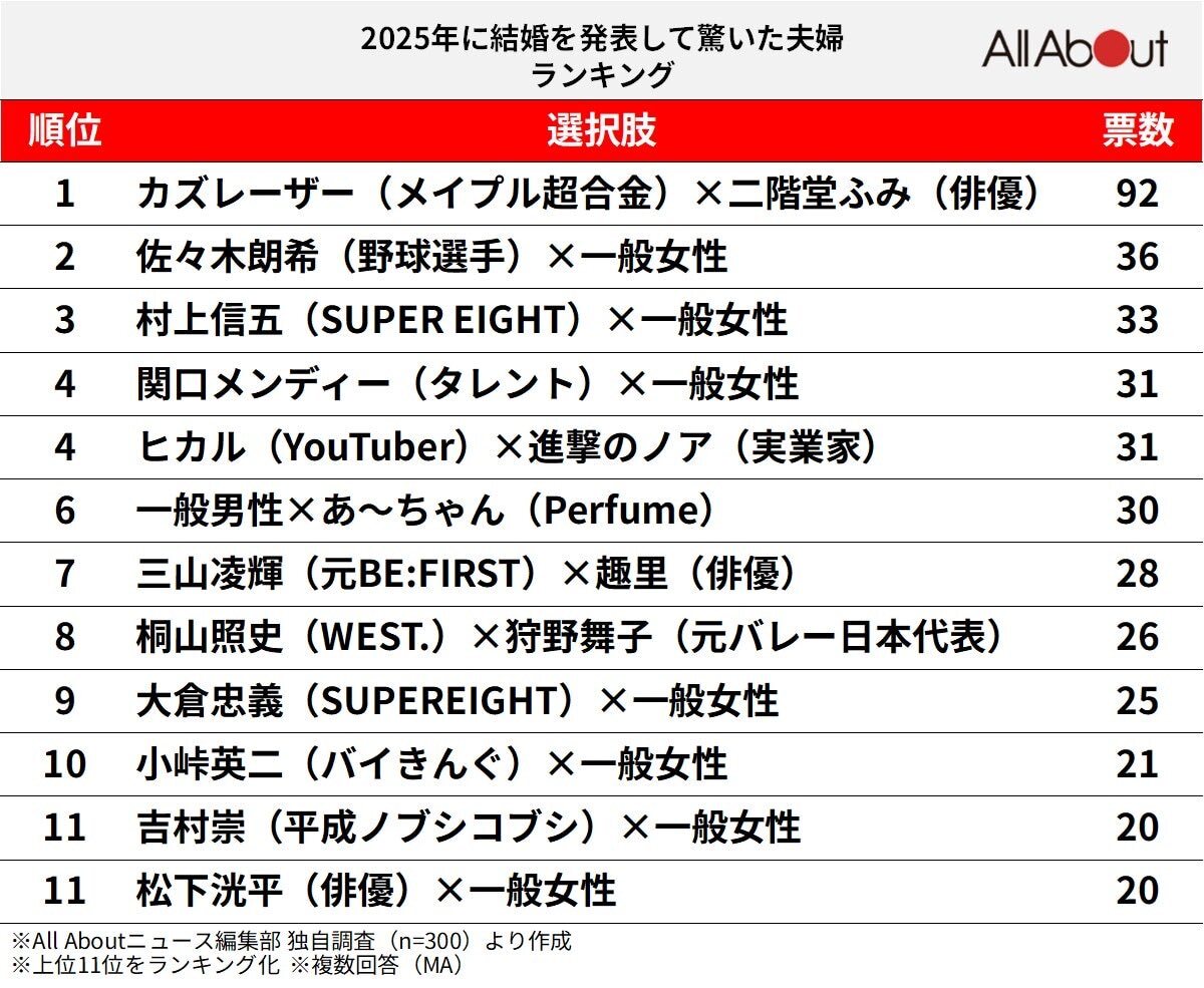 ㊗🆕#ヒカル ランクイン記事🌓12/15 🏅😈"4位:ヒカル(YouTuber)×#進撃のノア(実業家)" @kinnpatuhikaru @shingeki_noa @1chan_maessan #HKRnews 🔽#AllAbout 2025年に結婚を発表して驚いた夫婦ランキング! news.allabout.co.jp/articles/o/105… pic.x.com/SNpVlSBAn1