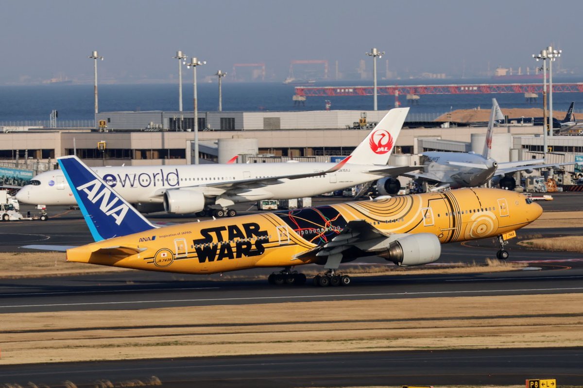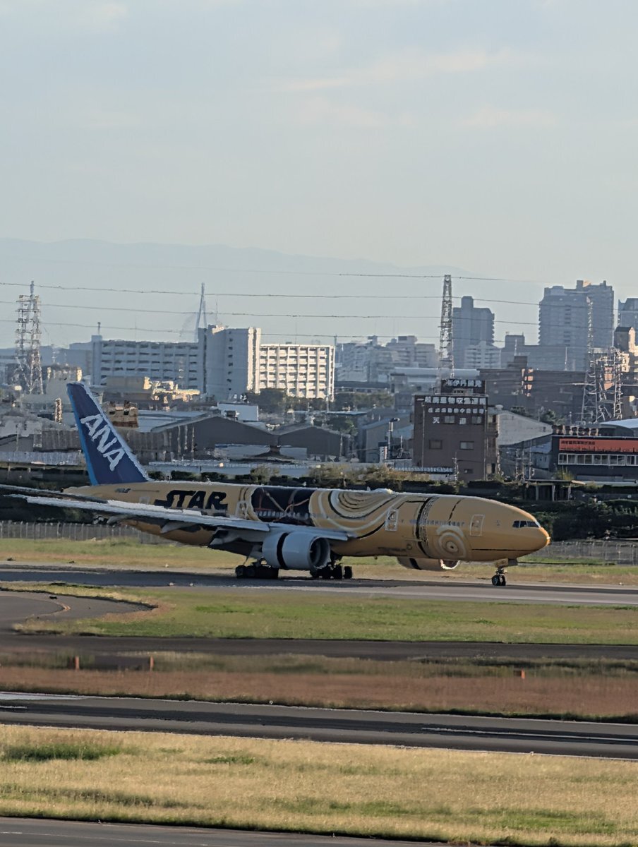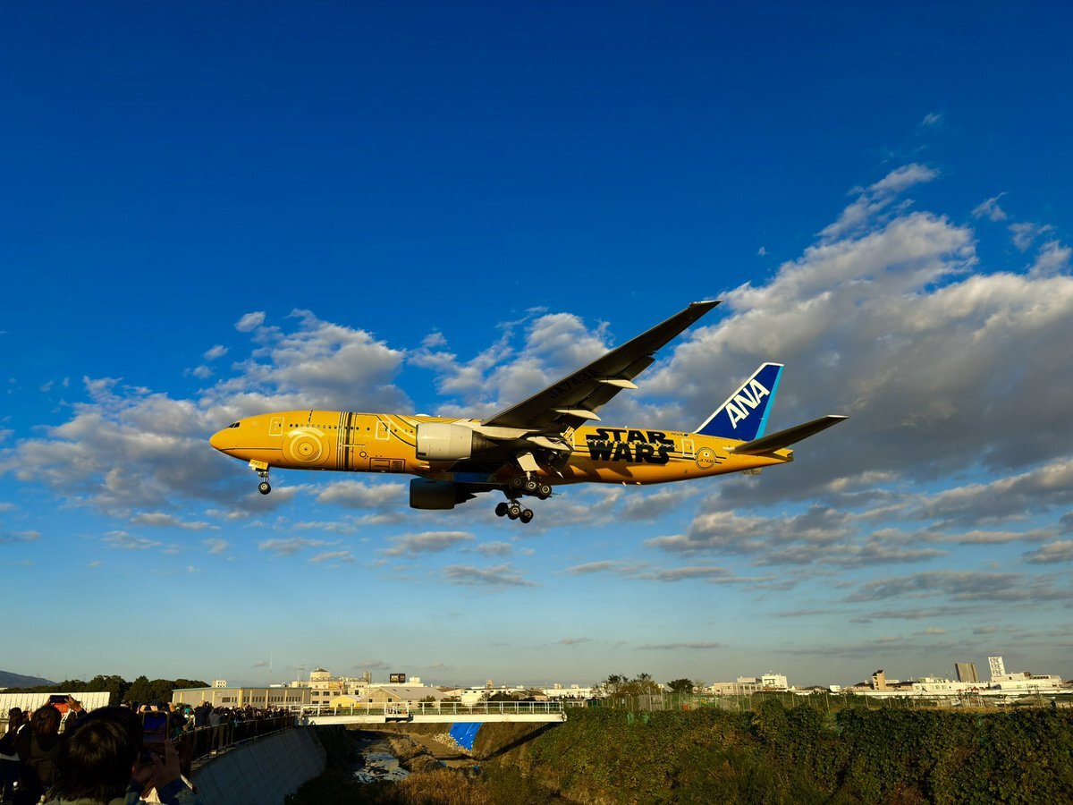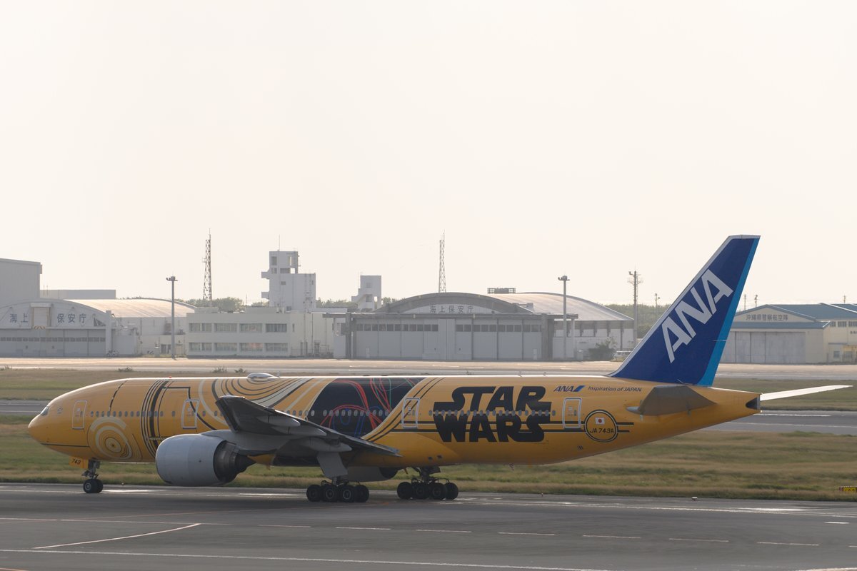#ANA の #B777 30周年、だそうです (1995年 12/23 就航開始) そのイベントが今日行われたようで、 この C-3PO ANA JET が使用されたと。 来年早々、運航終了(塗り替え)ですが、 最後のイベントだったのかな… (写真は、先日 #那覇空港 にて撮影) pic.x.com/2ajZQyFIlx