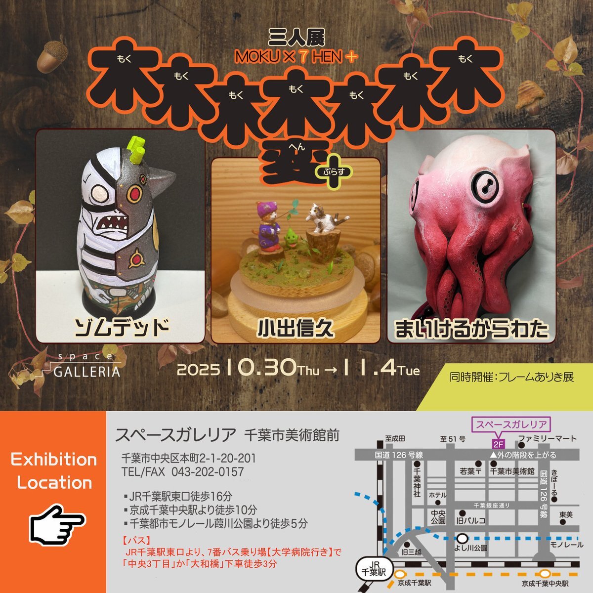 ゾンビはここら辺にしとくかな🧟♂️ あとは宇宙人と邪教徒だ! 🌳『小出信久&ゾムデッド&まいけるからわた 三人展 -木木木木木木木変+-』 📅 2025/10/30(木) ~11/4(火) 11:00~17:00 *最終日 16:00まで 🏠space GALLERIA 千葉県千葉市中央区本町2-1-201 #artist #art #zombie pic.x.com/1CRPOlJluI