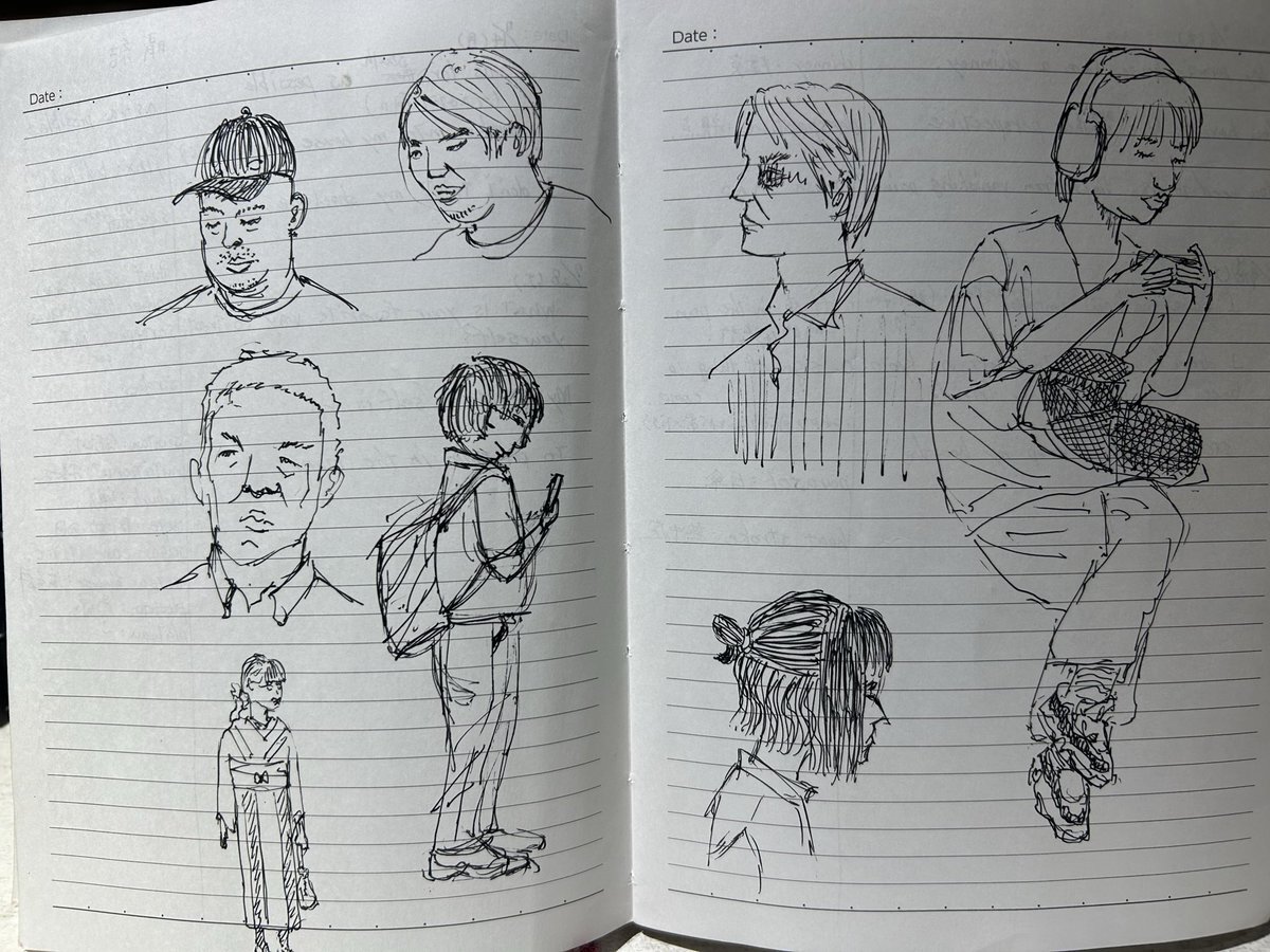 電車の中で。みんなそれぞれ何考えてんねやろな。スマホは何をみてるんやろ #絵 #イラスト #art #drawing #sketch #pencildrawing #artist #creative pic.x.com/bk6HvgLcRA