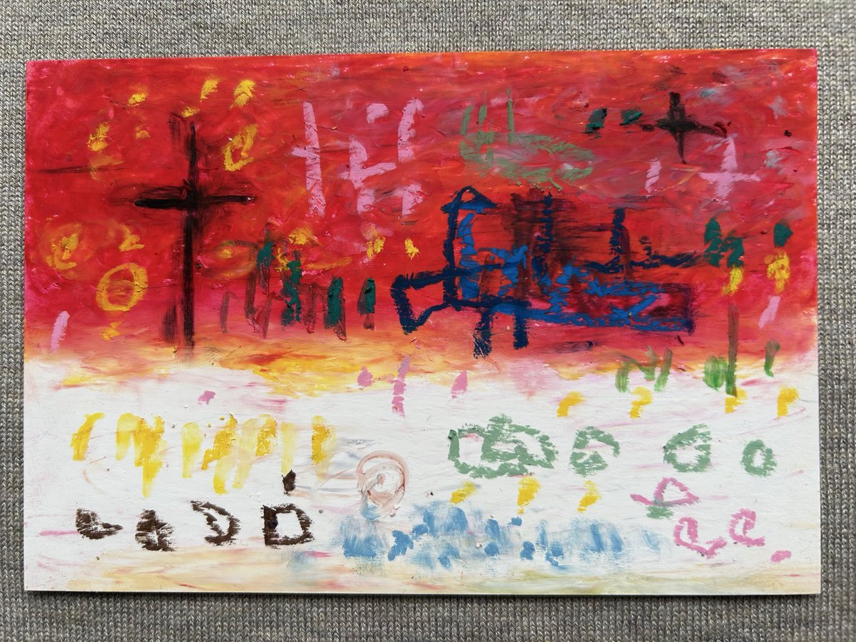 ハガキにサクラクレヨン、モンマルテオイルパステル画。 488:「composition(58)」 #crayon #oilpastel #art #artwork #postcardart #クレヨン #オイルパステル #絵 #絵描き #アナログ絵 #ハガキ絵 #芸術の輪 #耳塚有紀 pic.x.com/YX4pQqbax6