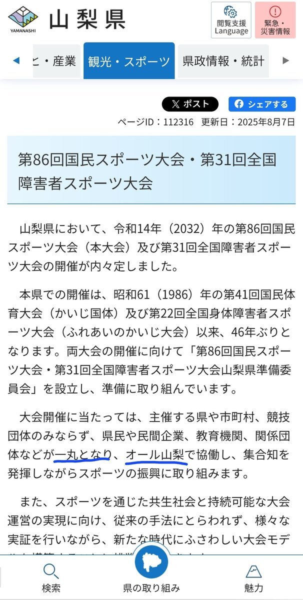 山梨県のホームページより⁡ ⁡こういってる割に『室内50mプールは作らない。他県でやって。』 はどうかと思う。⁡⁡ 他県出身の私がどうこう言うのはお門違いかも知れませんが、もっとたくさんの声を聞いてください。 ⁡まだ間に合います。早く考え直していただきたい。⁡⁡⁡ @yamanashipref