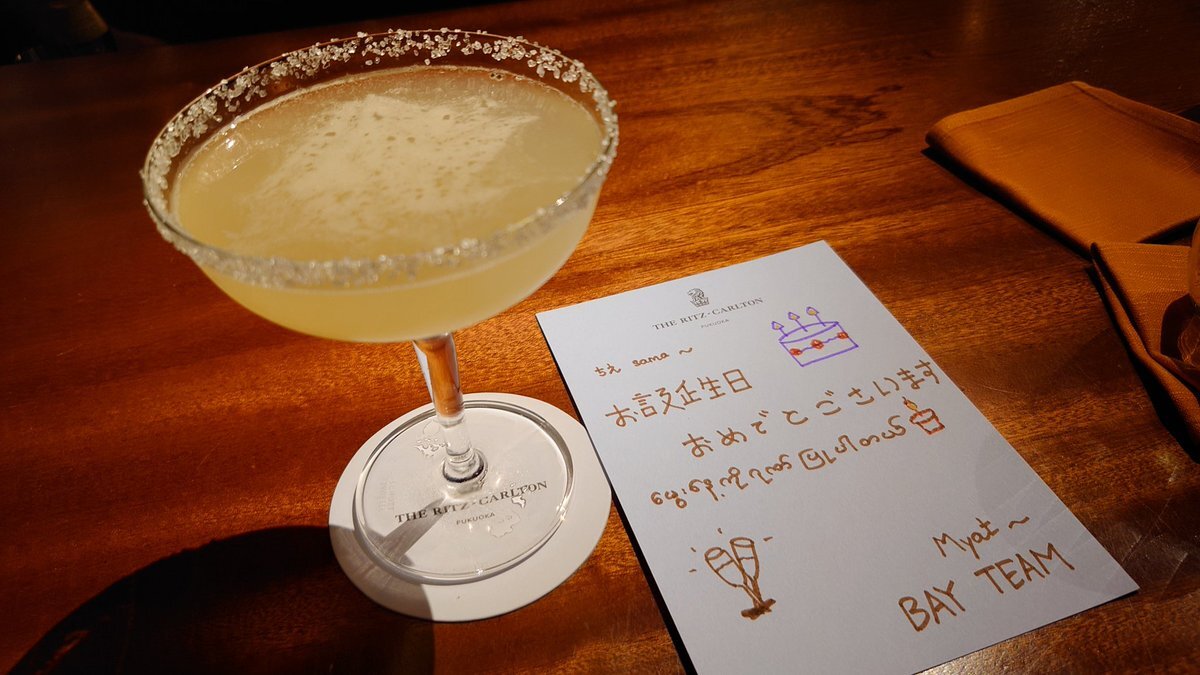 2杯目 ミャットさんがバースデーカード書いてくれた。 涙が出るほど嬉しかった。 #ザ・リッツ・カールトン福岡 #BAY #ここにもっと来れるように頑張って仕事するぞ pic.x.com/wXphV7siGY