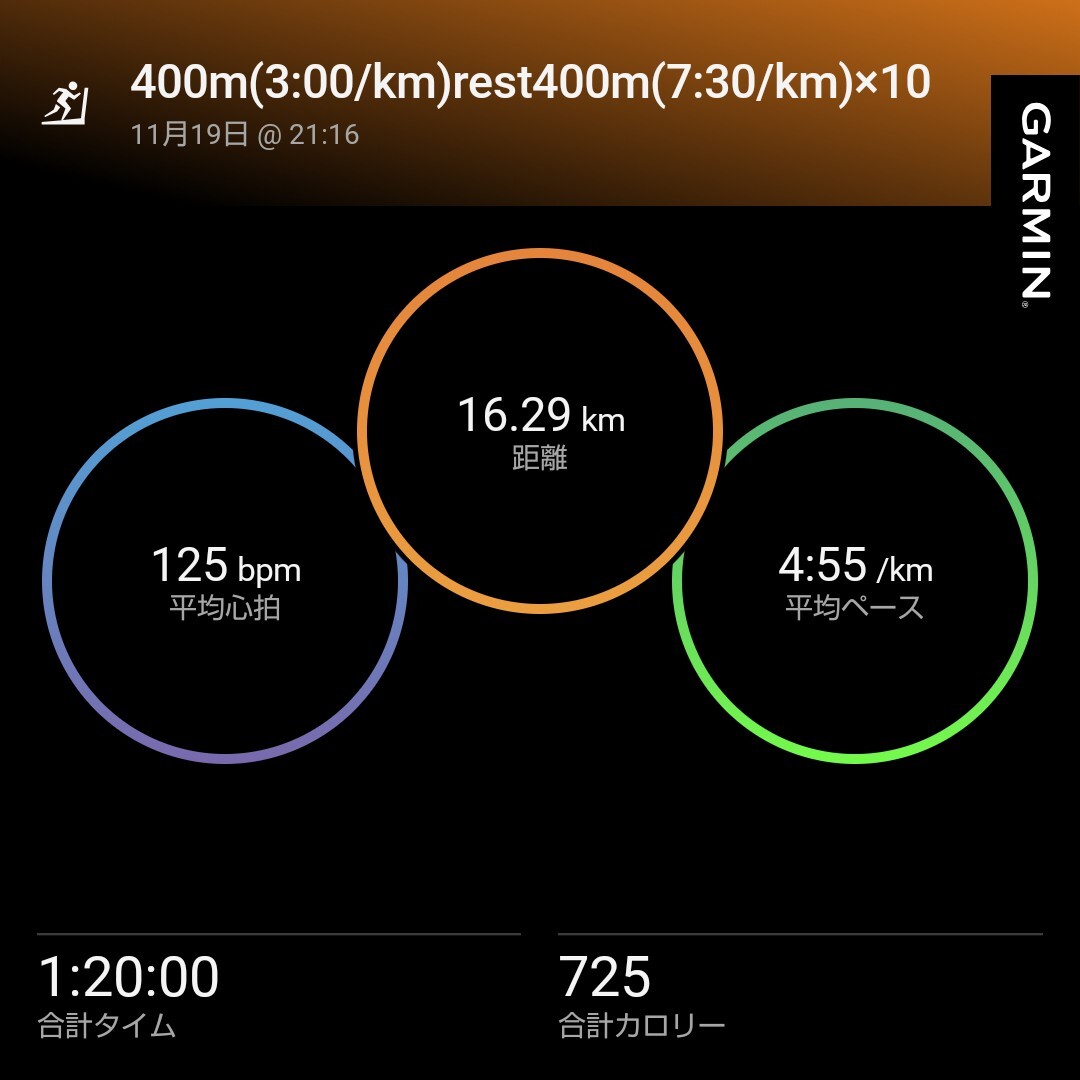 夜run80分終了。 アップ→400m(3:00/km)rest400m(7:30/km)×10→ダウン。 7trails Big's回聴きつつスピ練💪 宇宙と交信しつつもまだ行けたタラレバが出る平田さんとサポートの奥様も素敵過ぎますな😆 #garmin #beatyesterday pic.x.com/FooqqNcWpV